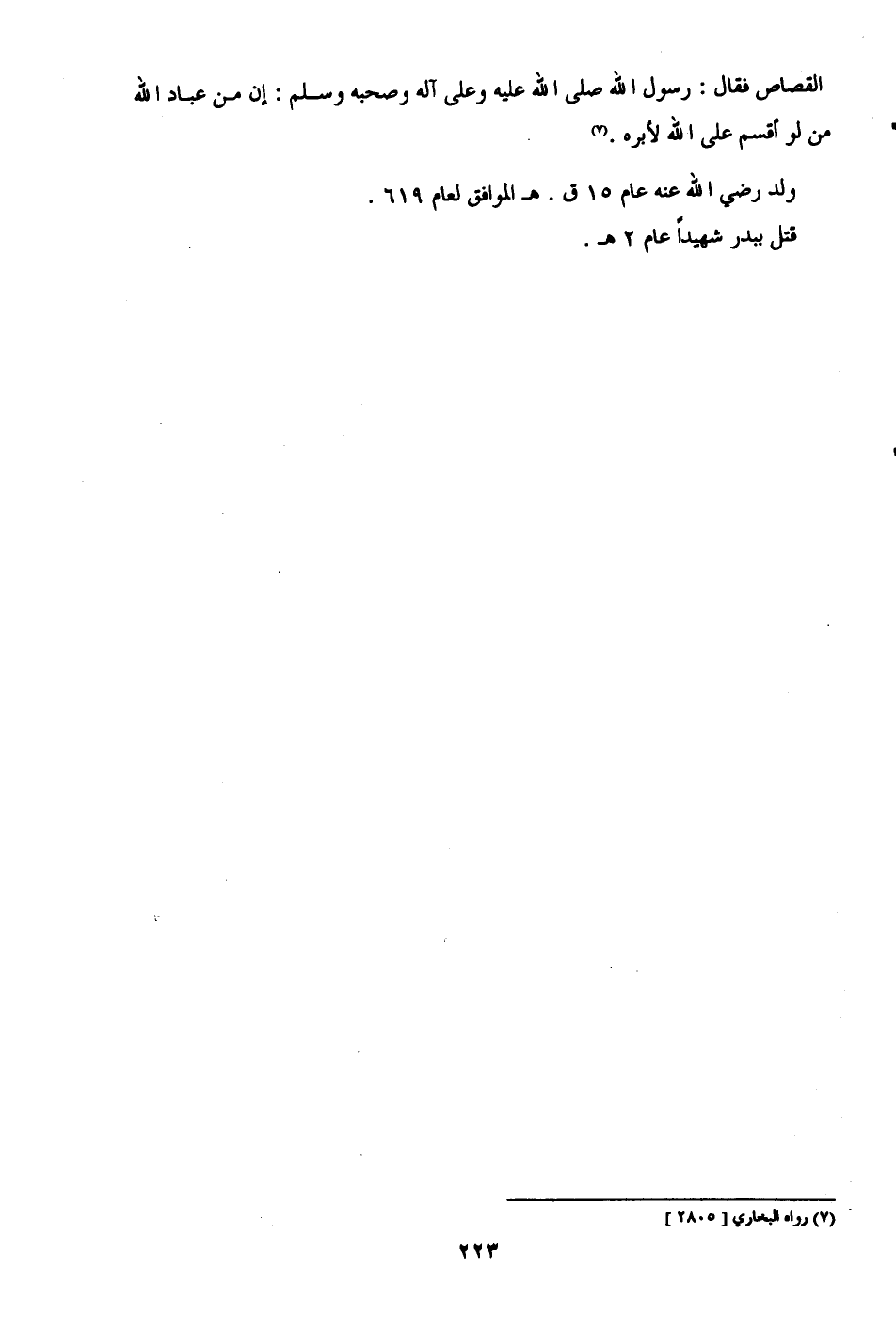 القصاص فقال: رسول الله صلى الله عليه وعلى آله وصحبه وسلم: إن من عباد الله من لو أقسم على الله لأبره. (¬7)