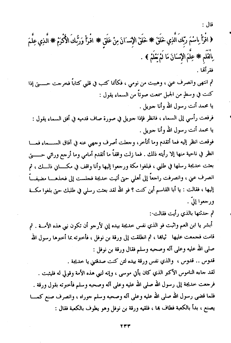 {اقْرَأْ بِاسْمِ رَبِّكَ الَّذِي خَلَقَ (1) خَلَقَ الْإِنْسَانَ مِنْ عَلَقٍ (2) اقْرَأْ وَرَبُّكَ الْأَكْرَمُ (3) الَّذِي عَلَّمَ بِالْقَلَمِ (4) عَلَّمَ الْإِنْسَانَ مَا لَمْ يَعْلَمْ}.
