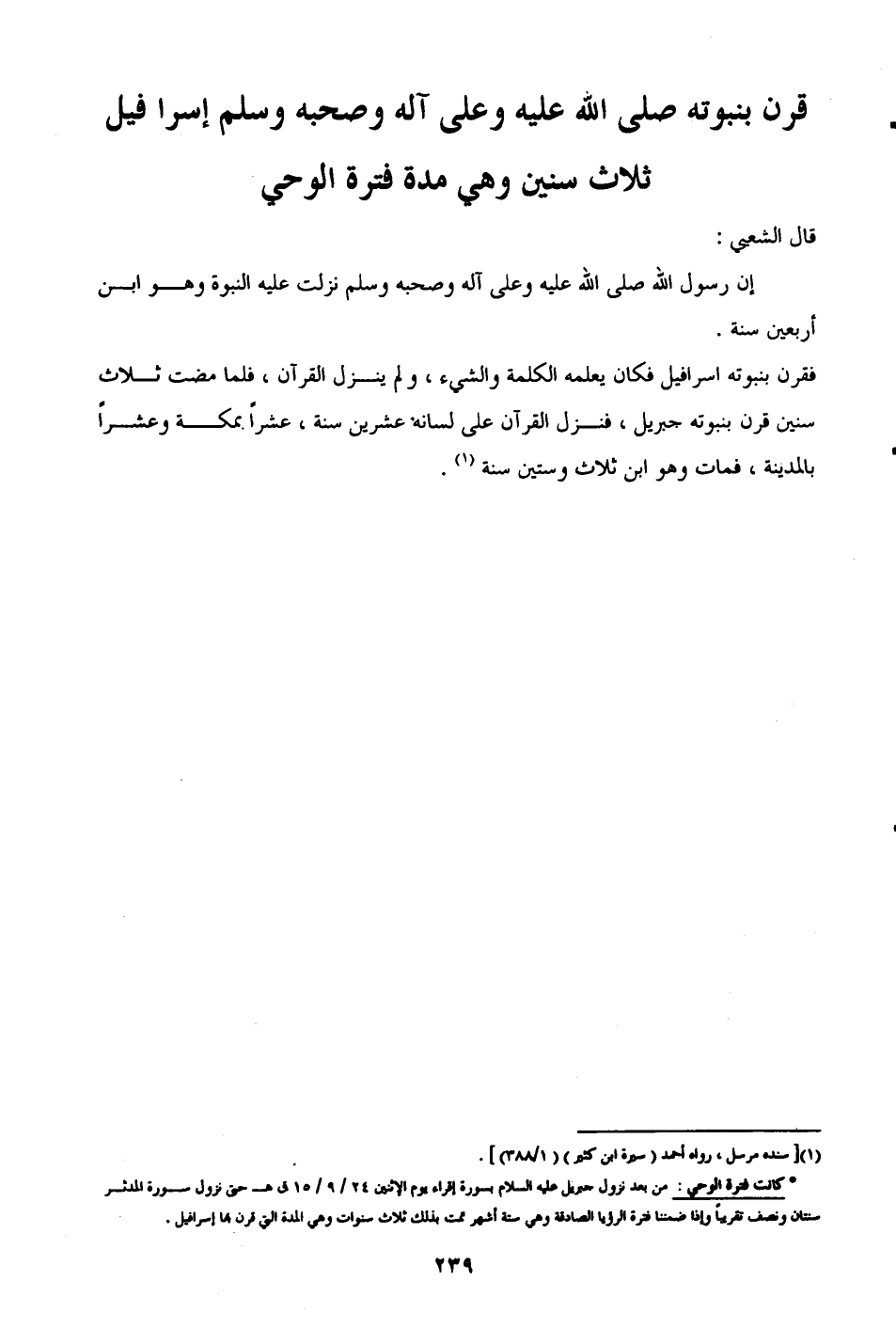 قرن بنبوته صلى الله عليه وعلى آله وصحبه وسلم إسرافيل ثلاث سنين وهي مدة فترة الوحي