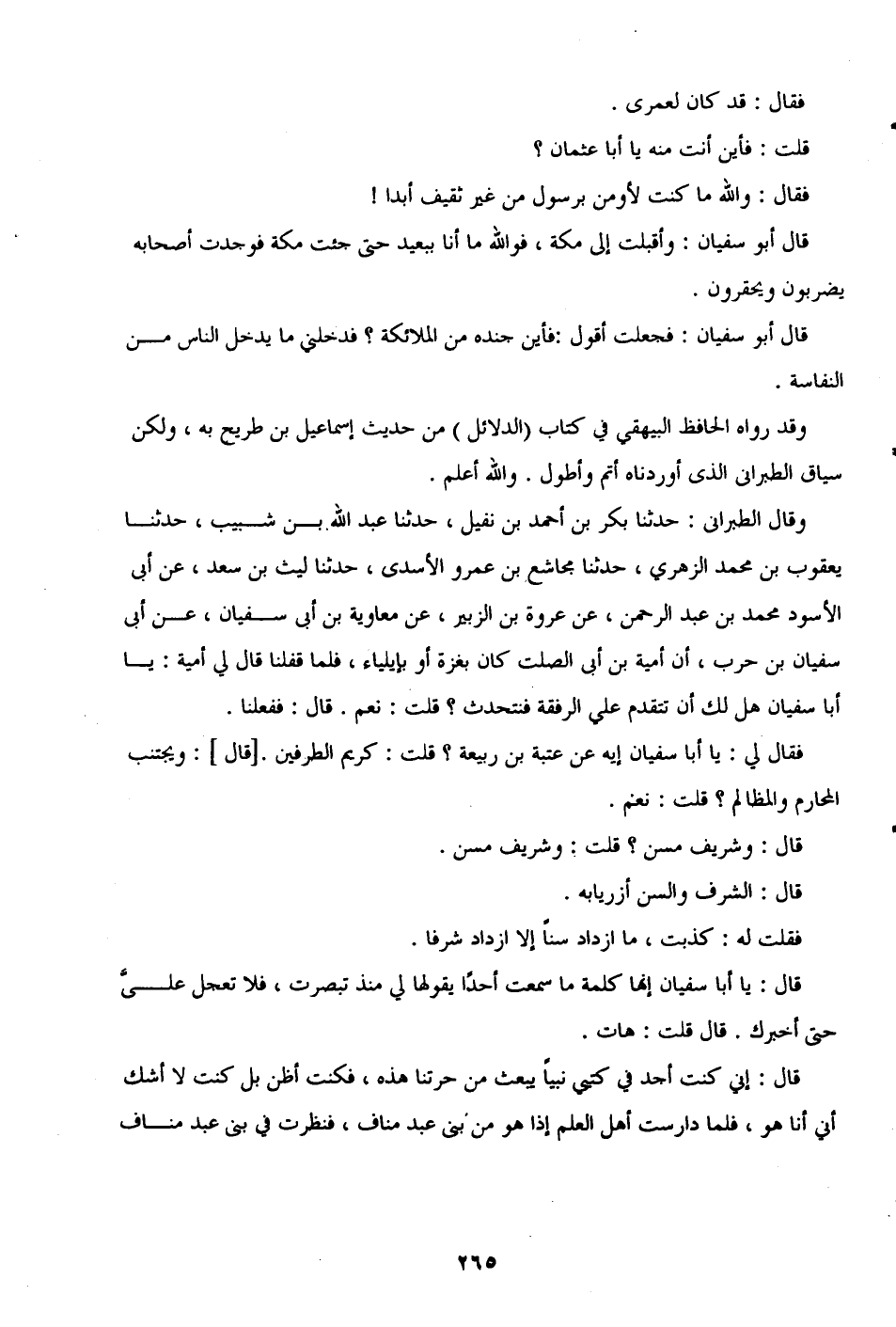 قال: يا أبا سفيان إنها كلمة ما سمعت أحدًا يقولها لي منذ تبصرت، فلا تعجل علىَّ حتى أخبرك. قال قلت: هات.