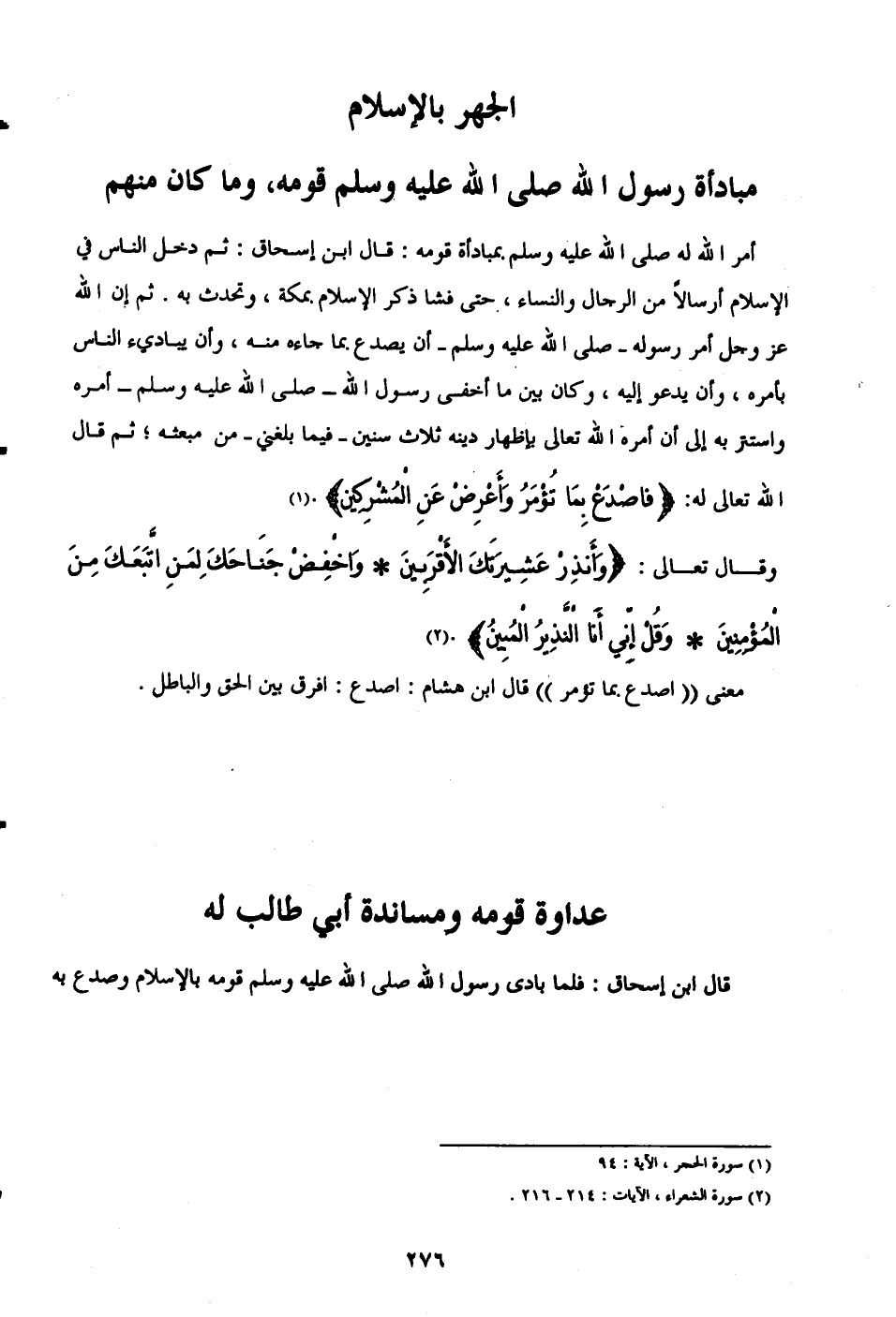 قال ابن إسحاق: فلما بادى رسول الله - صلى الله عليه وسلم - قومه بالإسلام وصدع به