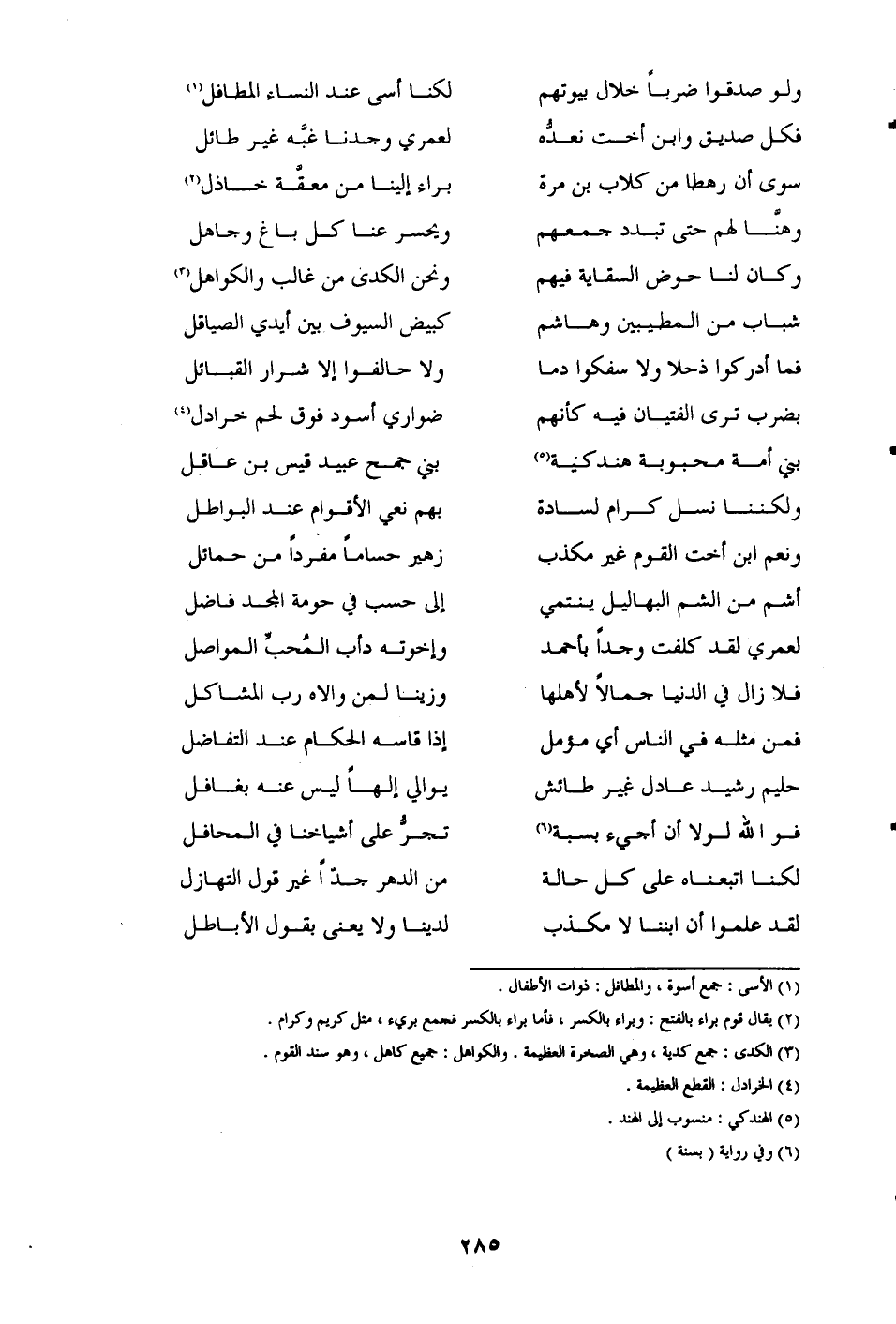 ولو صدقوا ضربًا خلال بيوتهم ... لكنا أسى عند النساء المطافل (¬1)