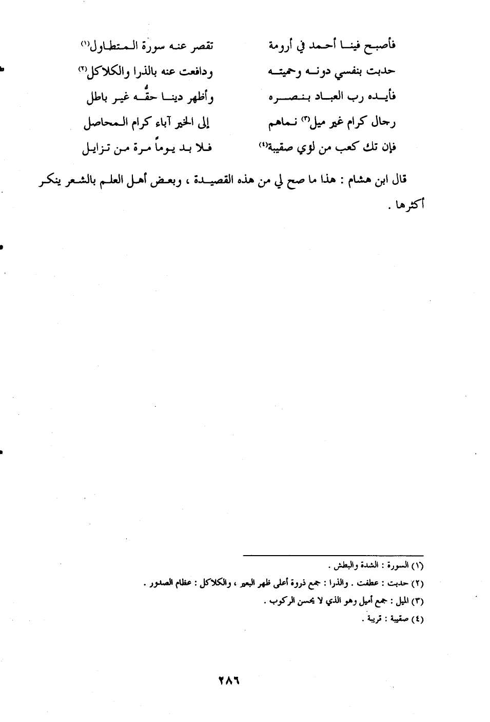 قال ابن هشام: هذا ما صح لي من هذه القصيدة، وبعض أهل العلم بالشعر ينكر أكثرها.