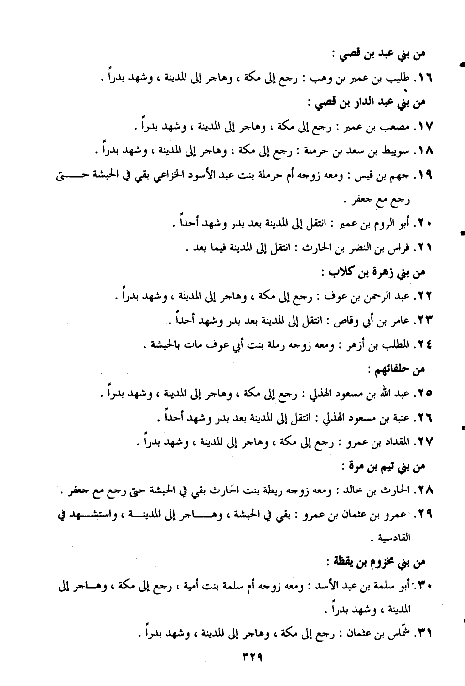 30 - أبو سلمة بن عبد الأسد: ومعه زوجه أم سلمة بنت أمية، رجع إلى مكة، وهاجر إلى المدينة، وشهد بدرًا.