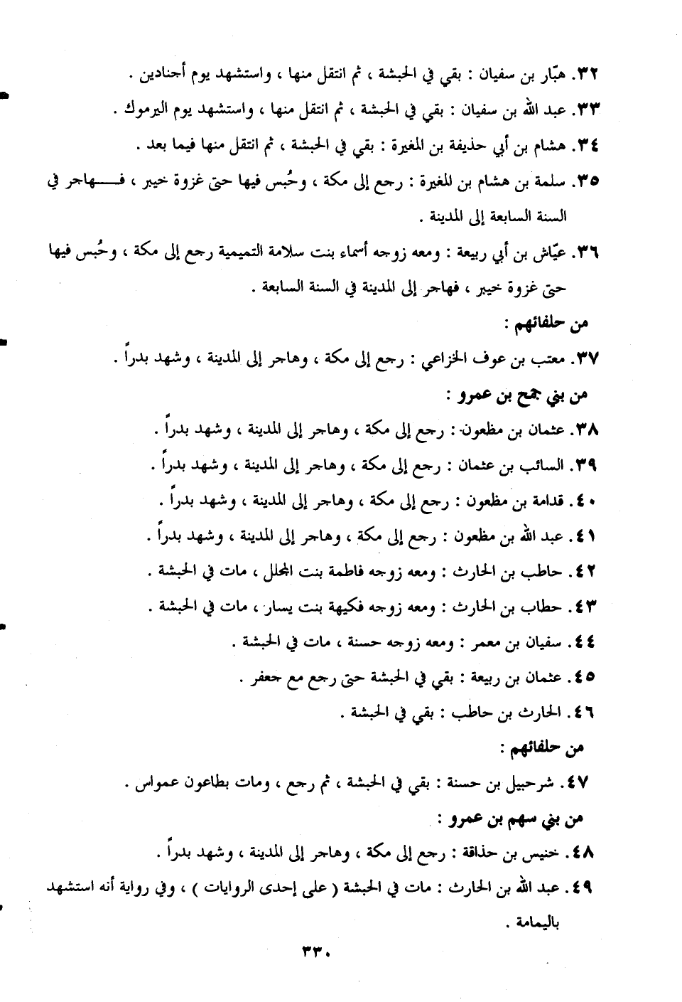 32 - هبّار بن سفيان: بقي في الحبشة، ثم انتقل منها، واستشهد يوم أجنادين.