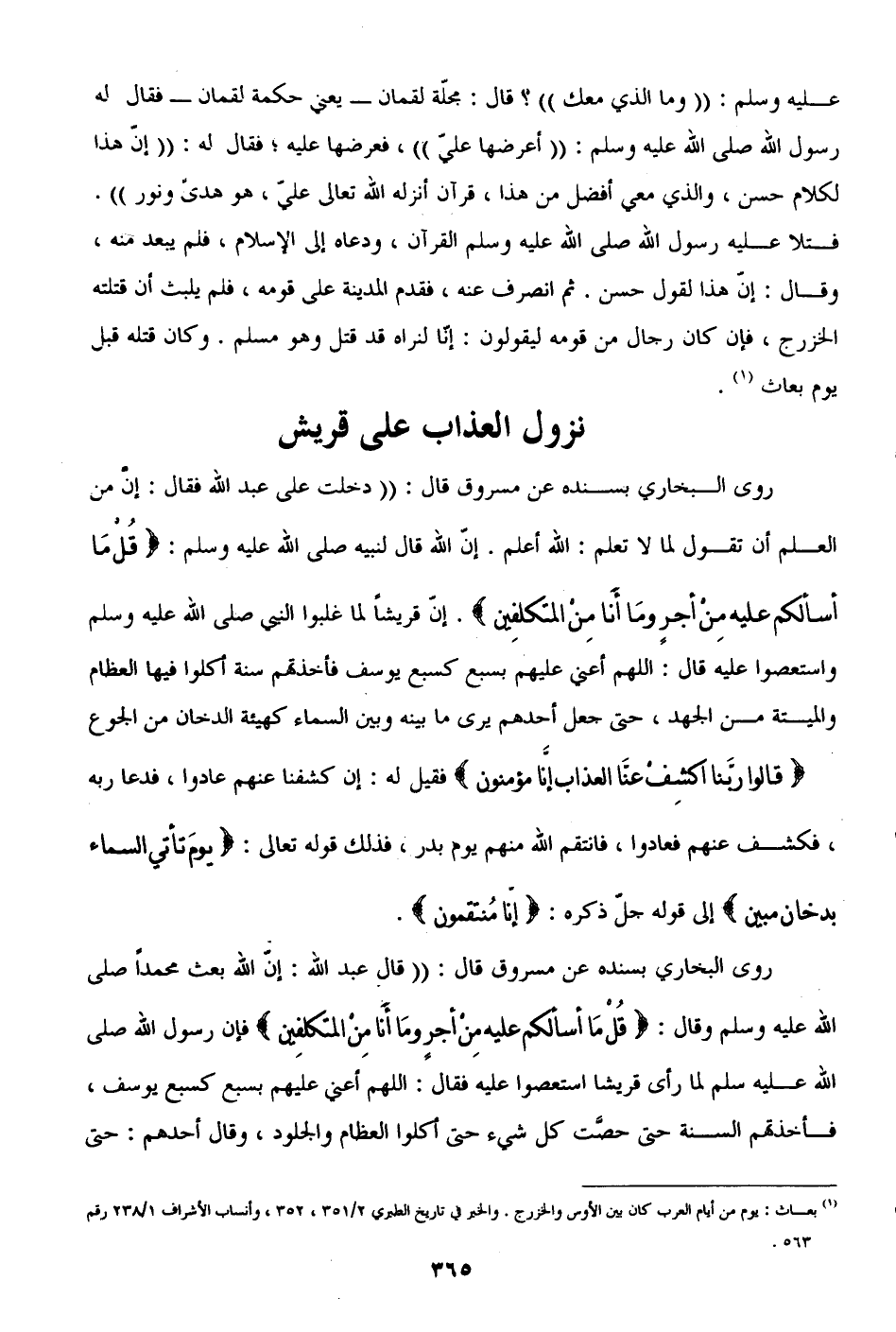(¬1) بعاث: يوم من أيام العرب كان بين الأوس والخزرج. والخبر في تاريخ الطبري 2/ 351، 352، وأنساب الأشراف 1/ 238 رقم 563.