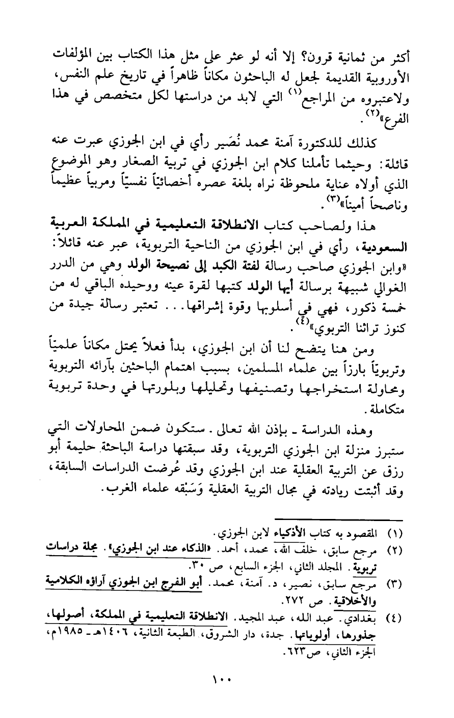 (¬3) مرجع سابق، نصير، د. آمنة، محمد. أبو الفرج ابن الجوزي آراؤه الكلامية والأخلاقية. ص 272.