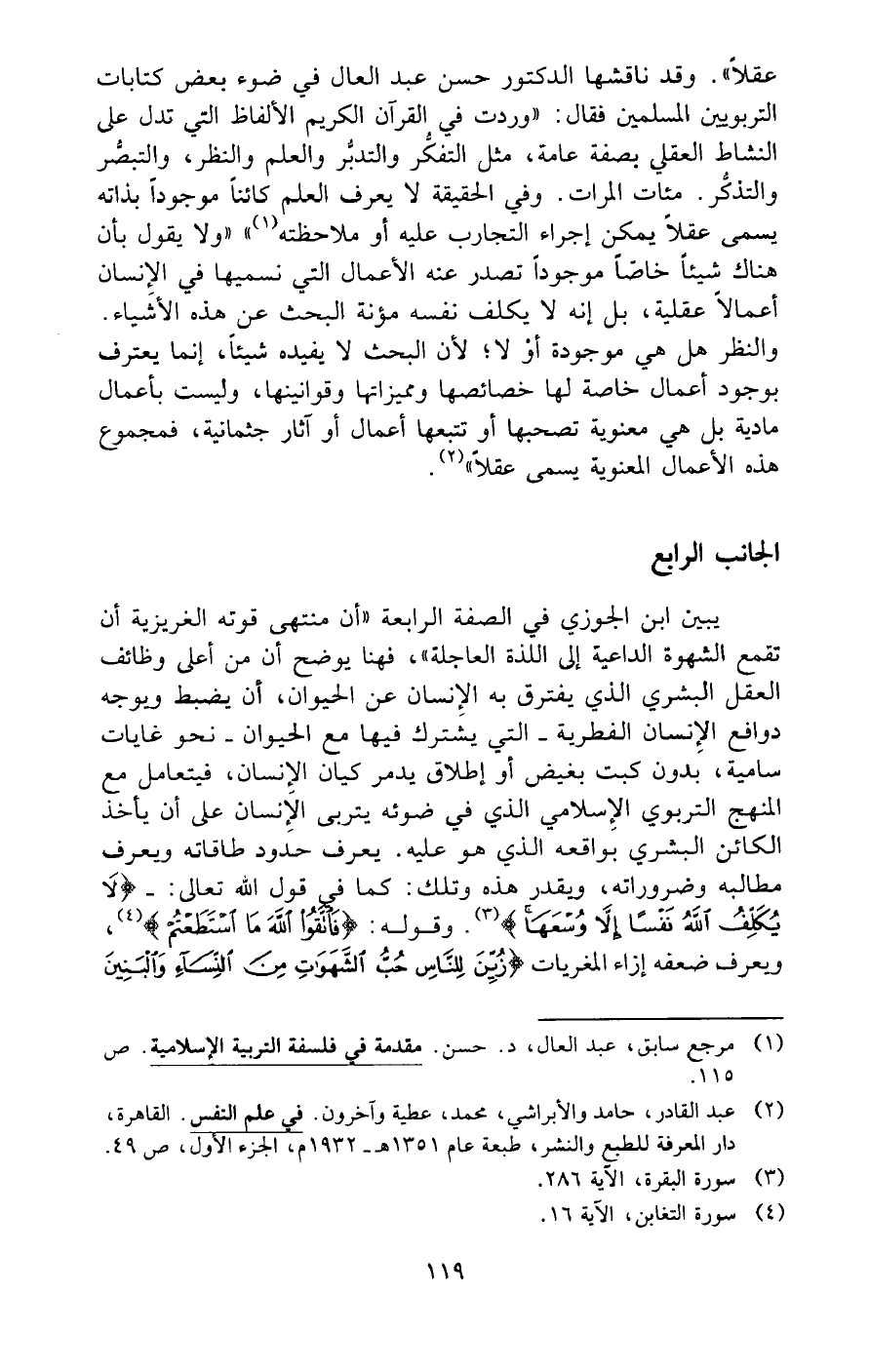 (¬1) مرجع سابق، عبد العال، د. حسن. مقدمة في فلسفة التربية الإسلامية. ص 115.