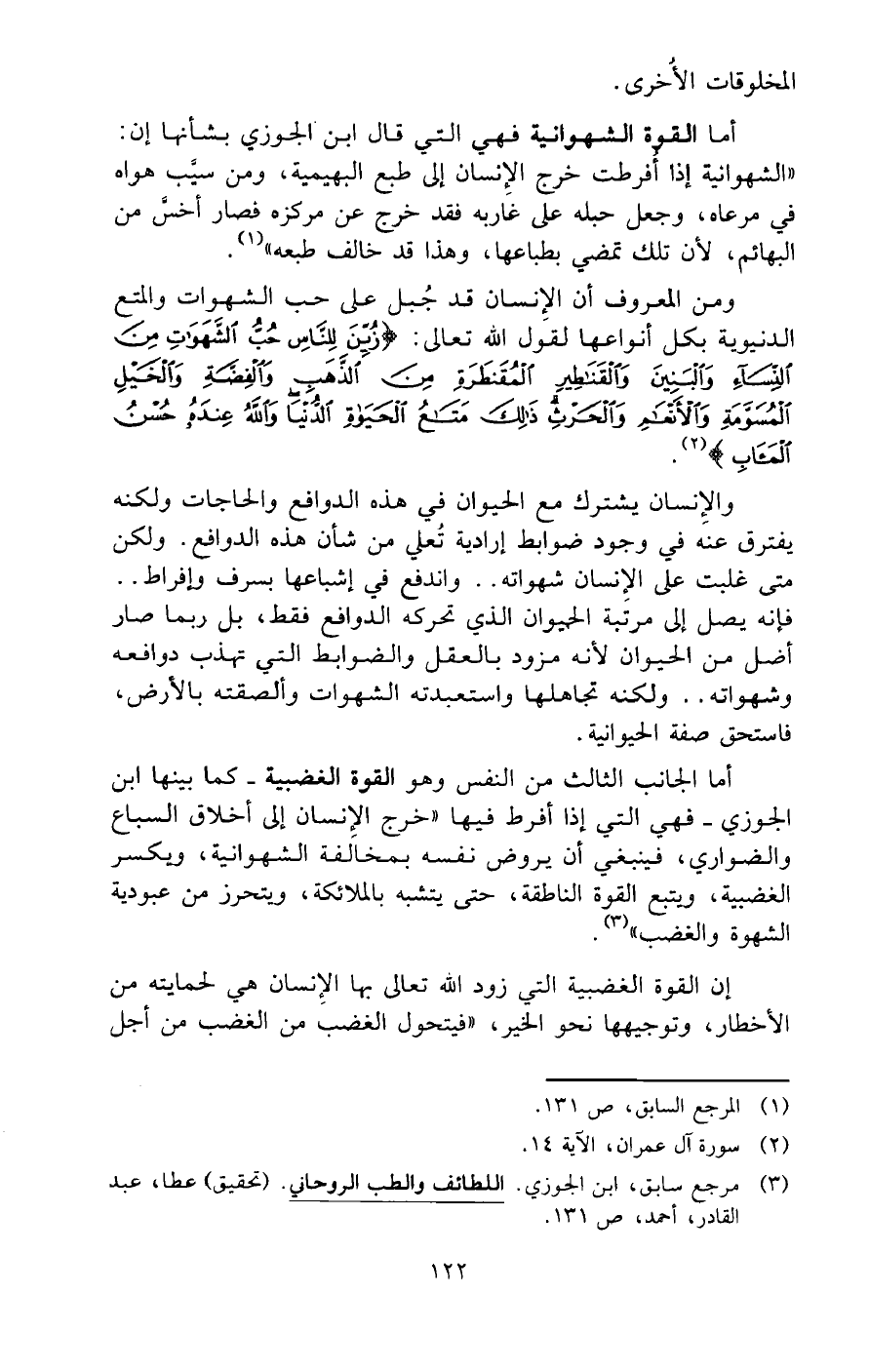 (¬3) مرجع سابق، ابن الجوزي. اللطائف والطب الروحاني. (تحقيق) عطا، عبد القادر، أحمد، ص 131.