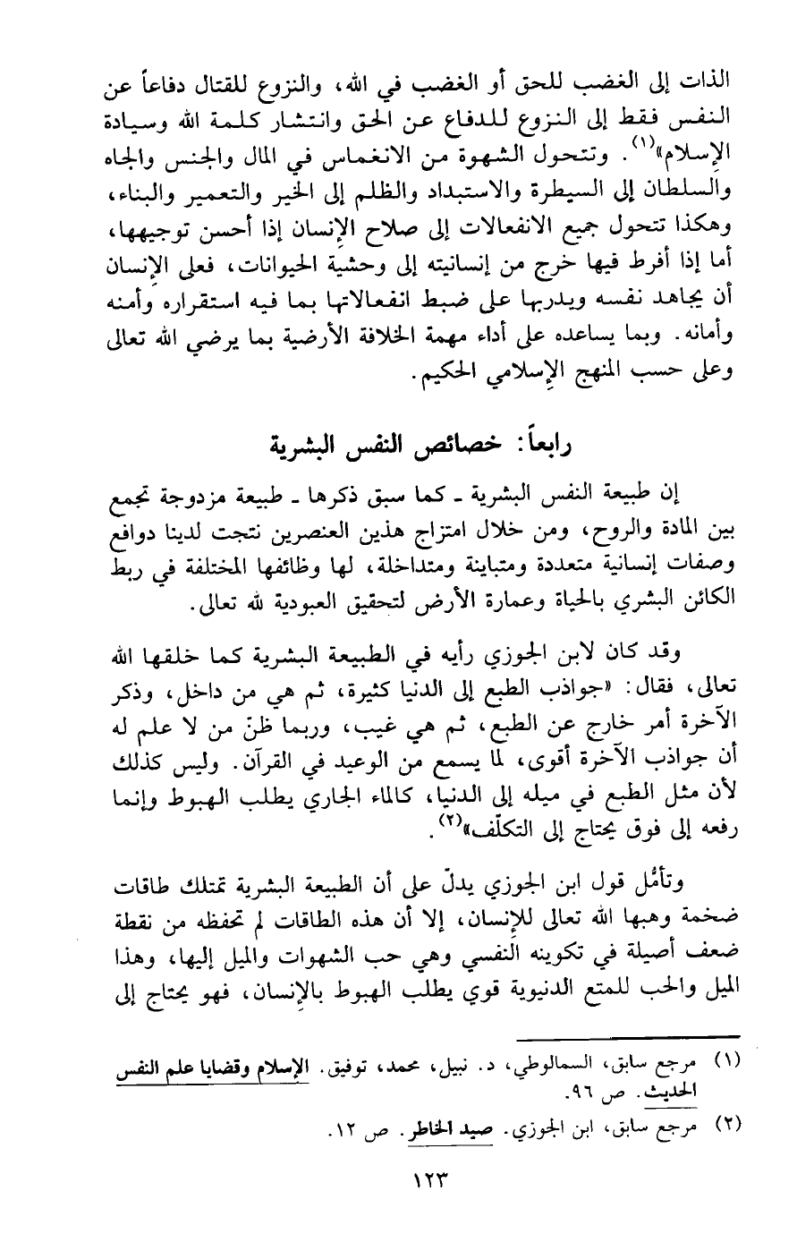 (¬1) مرجع سابق، السمالوطي، د. نبيل، محمد، توفيق. الإسلام وقضايا علم النفس الحديث. ص 96.
