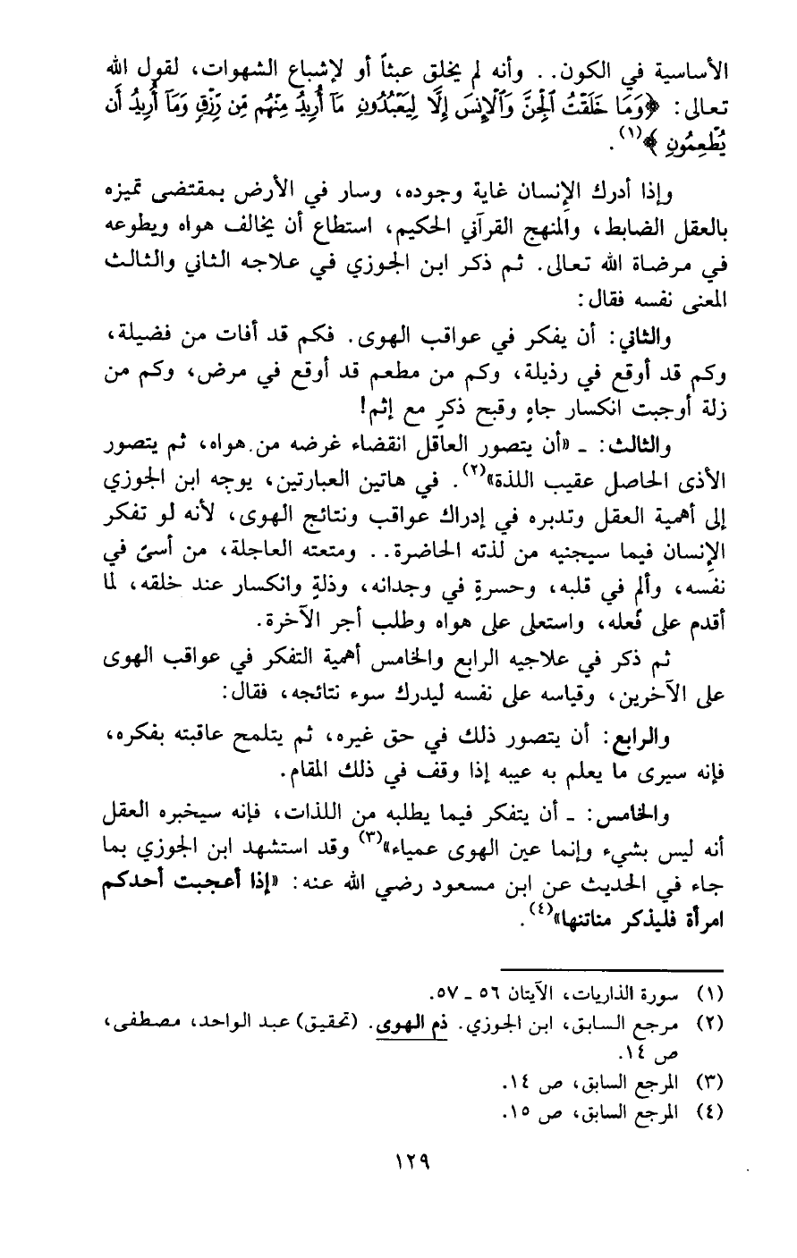 (¬2) مرجع السابق، ابن الجوزي. ذم الهوى. (تحقيق) عبد الواحد، مصطفى، ص 14.