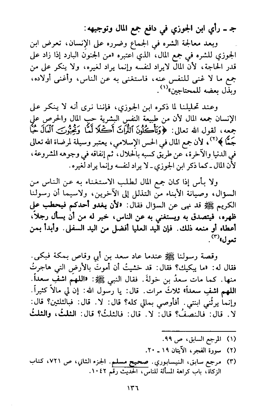 جـ - رأي ابن الجوزي في دفع جمع المال وتوجيهه: