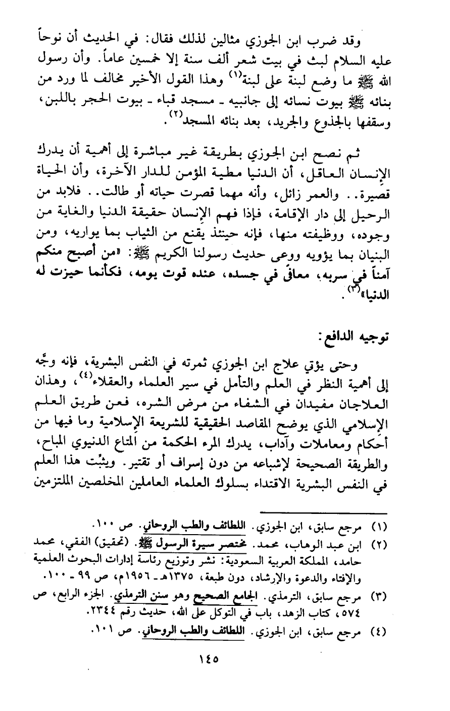 (¬4) مرجع سابق، ابن الجوزي. اللطائف والطب الروحاني. ص 101.