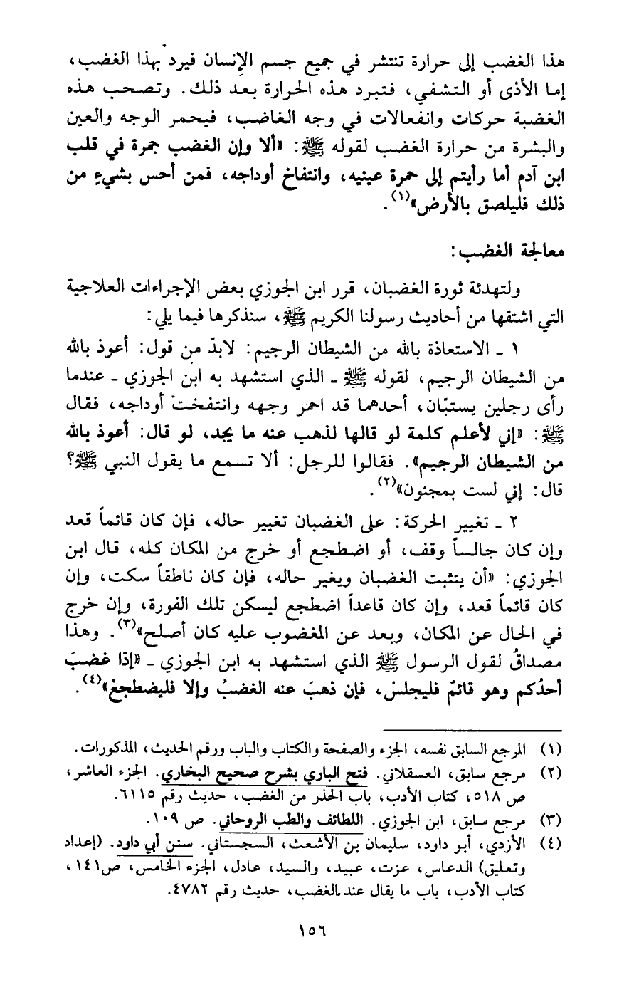 (¬4) الأزدي، أبو داود، سليمان بن الأشعث, السجستاني. سنن أبي داود. (إعداد وتعليق) الدعاس، عزت، عبيد، والسيد، عادل، الجزء الخامس، ص 141، كتاب الأدب، باب ما يقال عند الغضب، حديث رقم 4782.