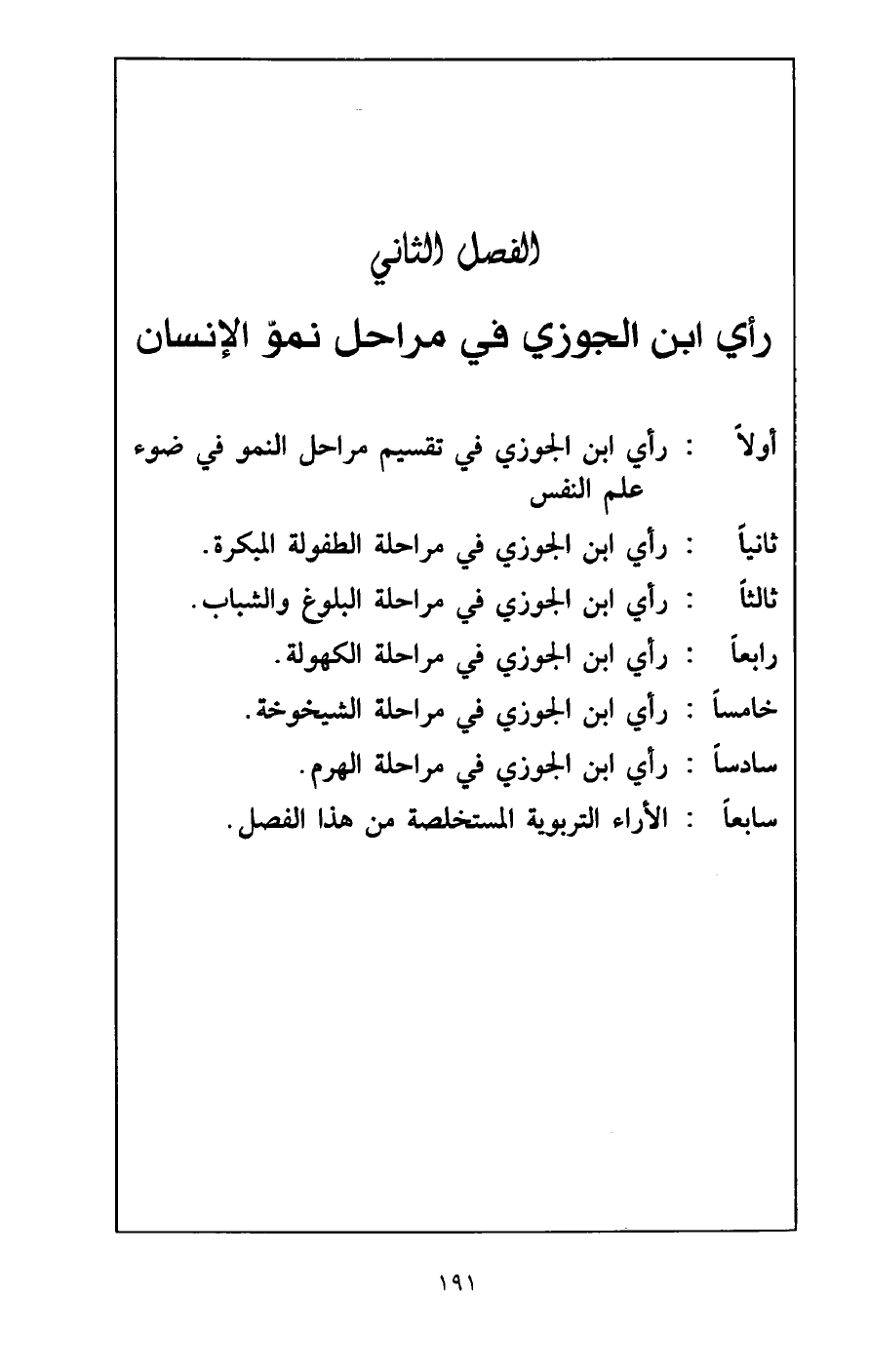• الفصل الثاني رأي ابن الجوزي في مراحل نموّ الإِنسان