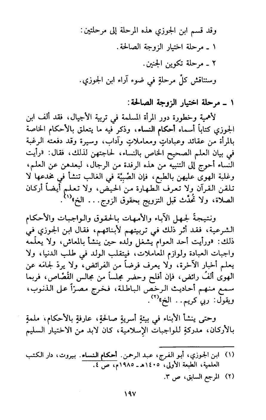 (¬1) ابن الجوزي، أبو الفرج، عبد الرحمن. أحكام النساء. بيروت، دار الكب العلمية، الطبعة الأولى، 1405 هـ - 1985 م، ص 4.