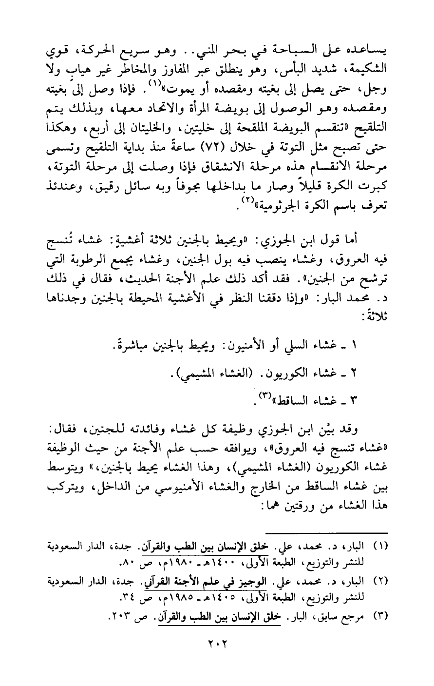 (¬2) البار، د. محمد، علي. الوجيز في علم الأجنة القرآني. جدة، الدار السعودية للنشر والتوزيع، الطبعة الأولى، 1405 هـ - 1985 م، ص 34.