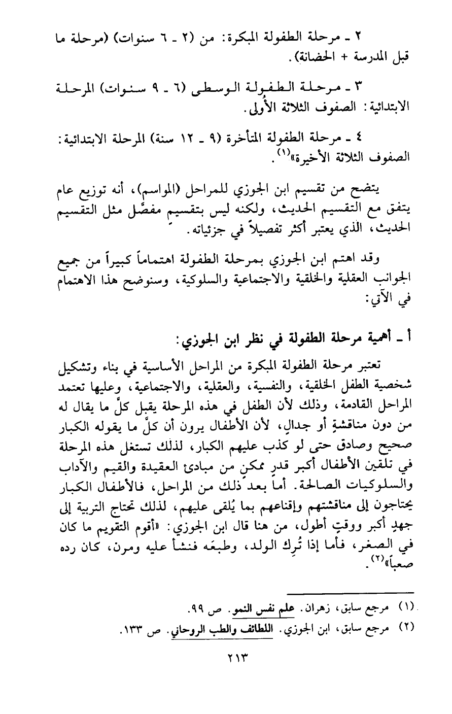 أ- أهمية مرحلة الطفولة في نظر ابن الجوزي: