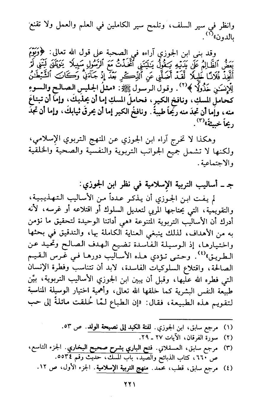 (¬1) مرجع سابق، ابن الجوزي. لفتة الكبد إلى نصيحة الولد. ص 53.