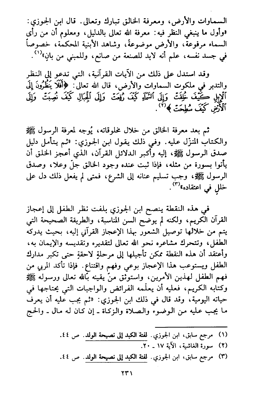 (¬3) مرجع سابق، ابن الجوزي. لفتة الكبد إلى نصيحة الولد. ص 44.