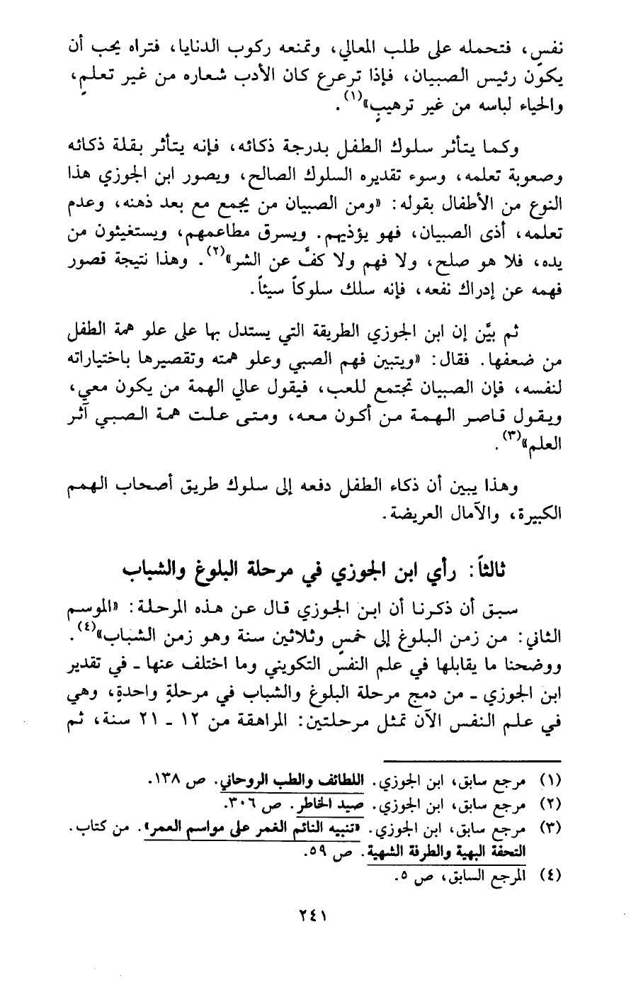 ثالثًا: رأي ابن الجوزي في مرحلة البلوغ والشباب