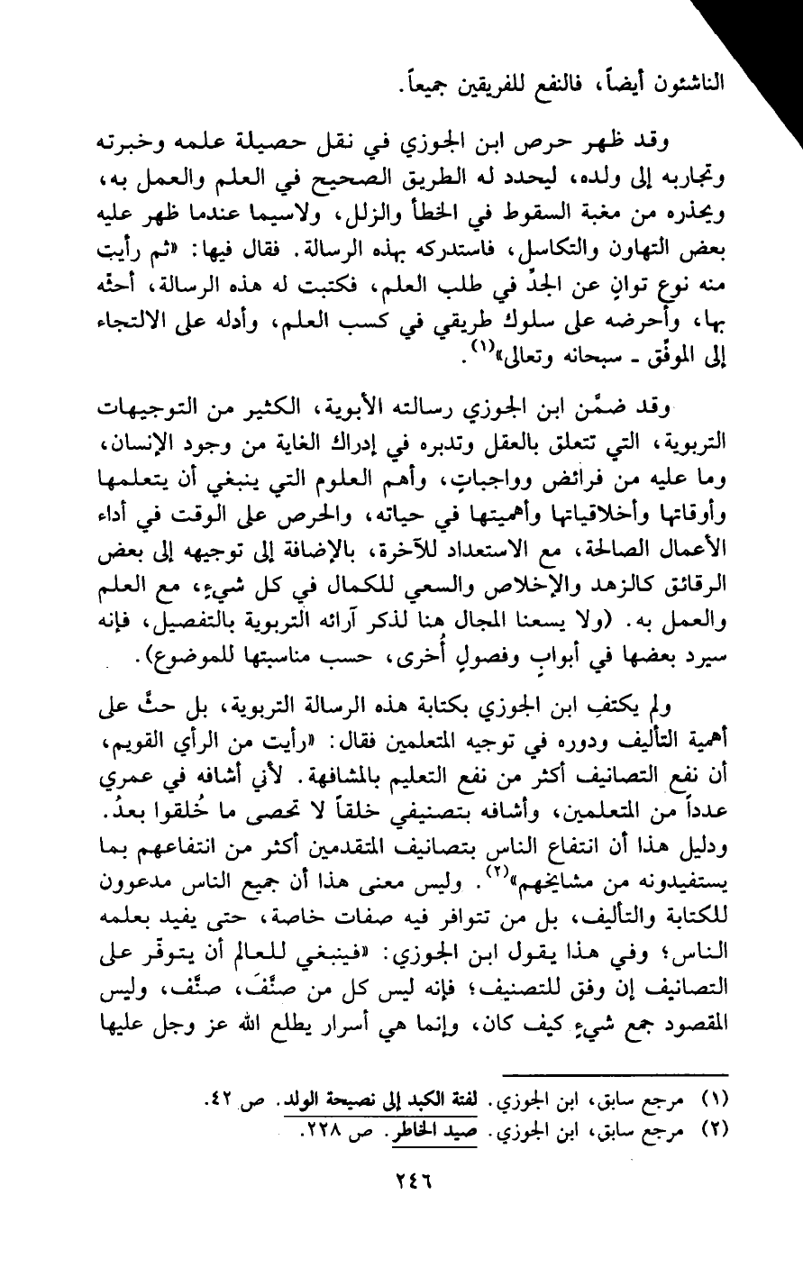 (¬2) مرجع سابق، ابن الجوزي. صيد الخاطر. ص 228.