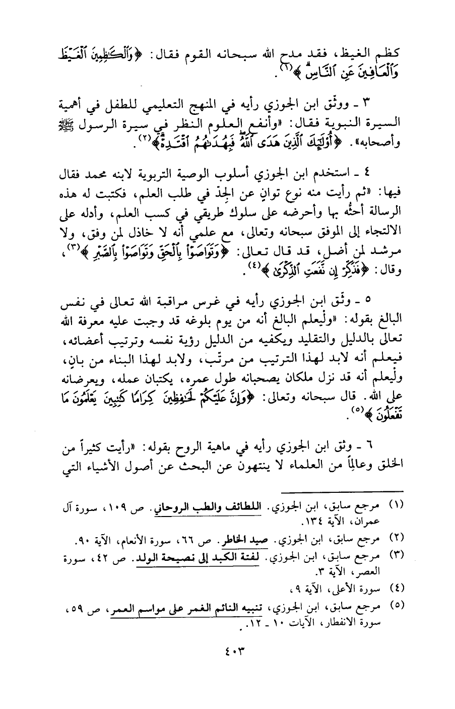 (¬2) مرجع سابق، ابن الجوزي. صيد الخاطر. ص 66، سورة الأنعام، الآية 90.