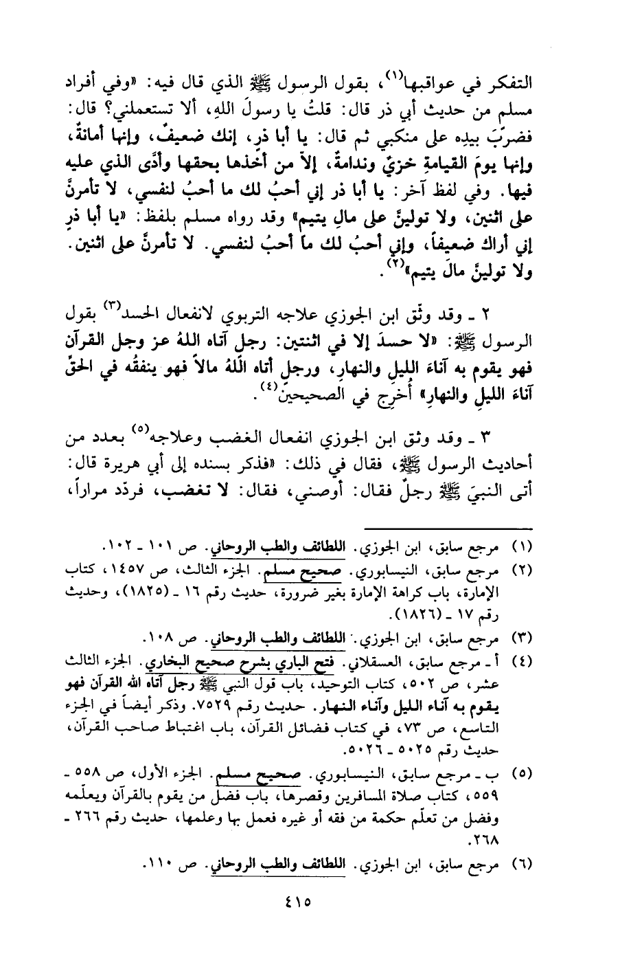 (¬5) مرجع سابق، ابن الجوزي. اللطائف والطب الروحاني. ص 110.