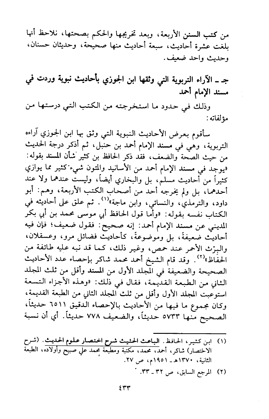 (¬1) ابن كثير، الحافظ. الباعث الحثيث شرح اختصار علوم الحديث. (شرح الاختصار) شاكر، أحمد، محمد، مكتبة ومطبعة محمد علي صبيح وأولاده، الطبعة الثانية، 1370 هـ - 1951 م، ص 27.