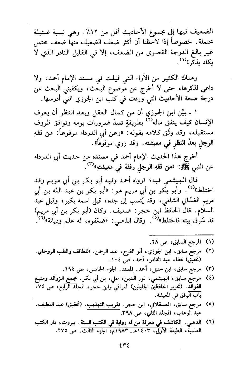 (¬4) مرجع سابق، الهيثمي، نور الدين، علي، بن أبي بكر. مجمع الزوائد ومنبع الفوائد. (تحرير الحافظين الجليلين) العراقي وابن حجر، المجلد الرابع، ص 74، باب الرفق في المعيشة.