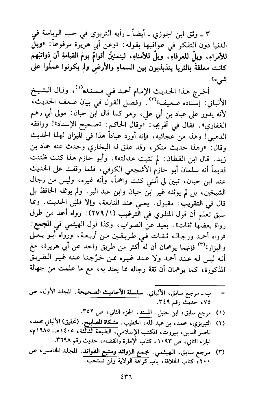 (¬3) مرجع سابق، الهيثمي. مجمع الزوائد ومنبع الفوائد. المجلد الخامس، ص 200، كتاب الخلافة، باب كراهة الولاية ولمن تستحب.