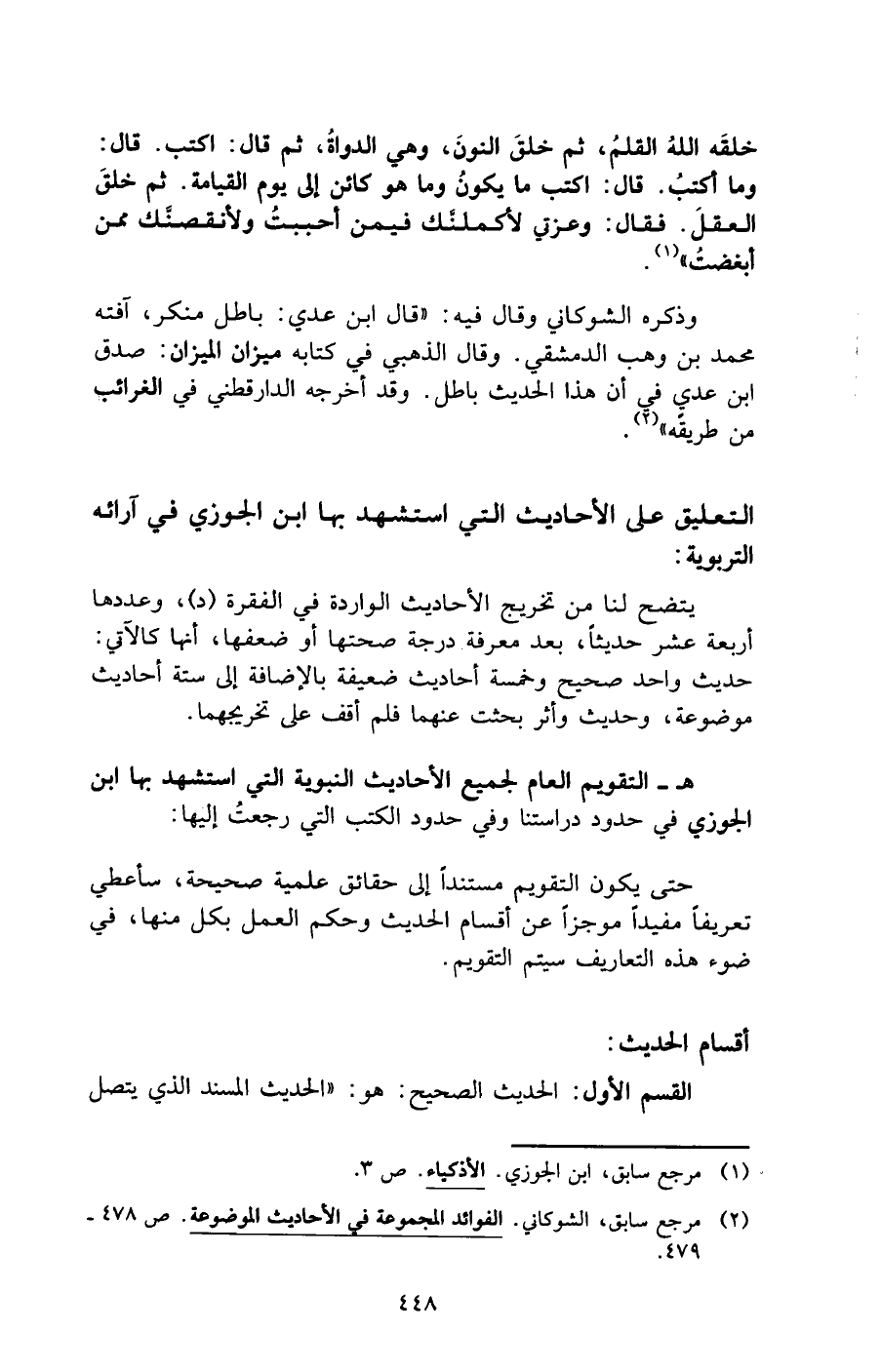 (¬2) مرجع سابق، الشوكاني. الفوائد المجموعة في الأحاديث الموضوعة. ص 478 - 479.