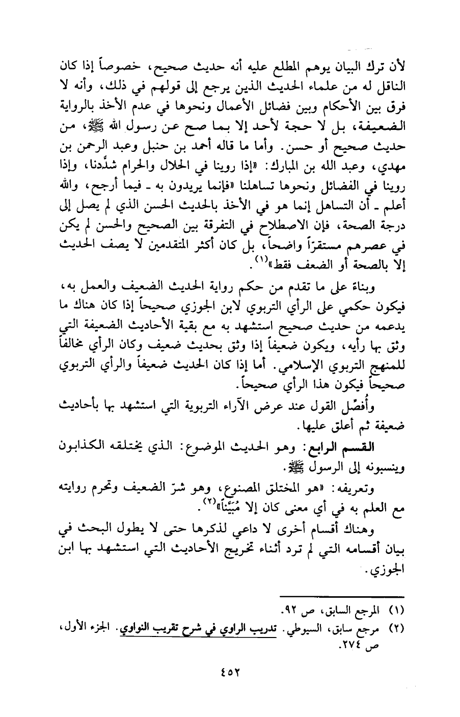 (¬2) مرجع سابق، السيوطي. تدريب الراوي في شرح تقريب النواوي. الجزء الأول، ص 274.