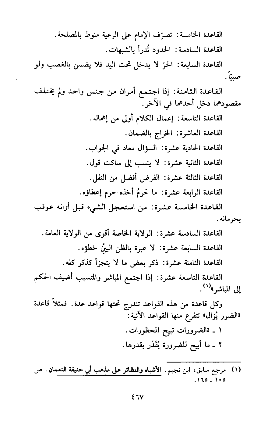 (¬1) مرجع سابق، ابن نجيم. الأشباه والنظائر على مذهب أبي حنيفة النعمان. ص 105 - 165.
