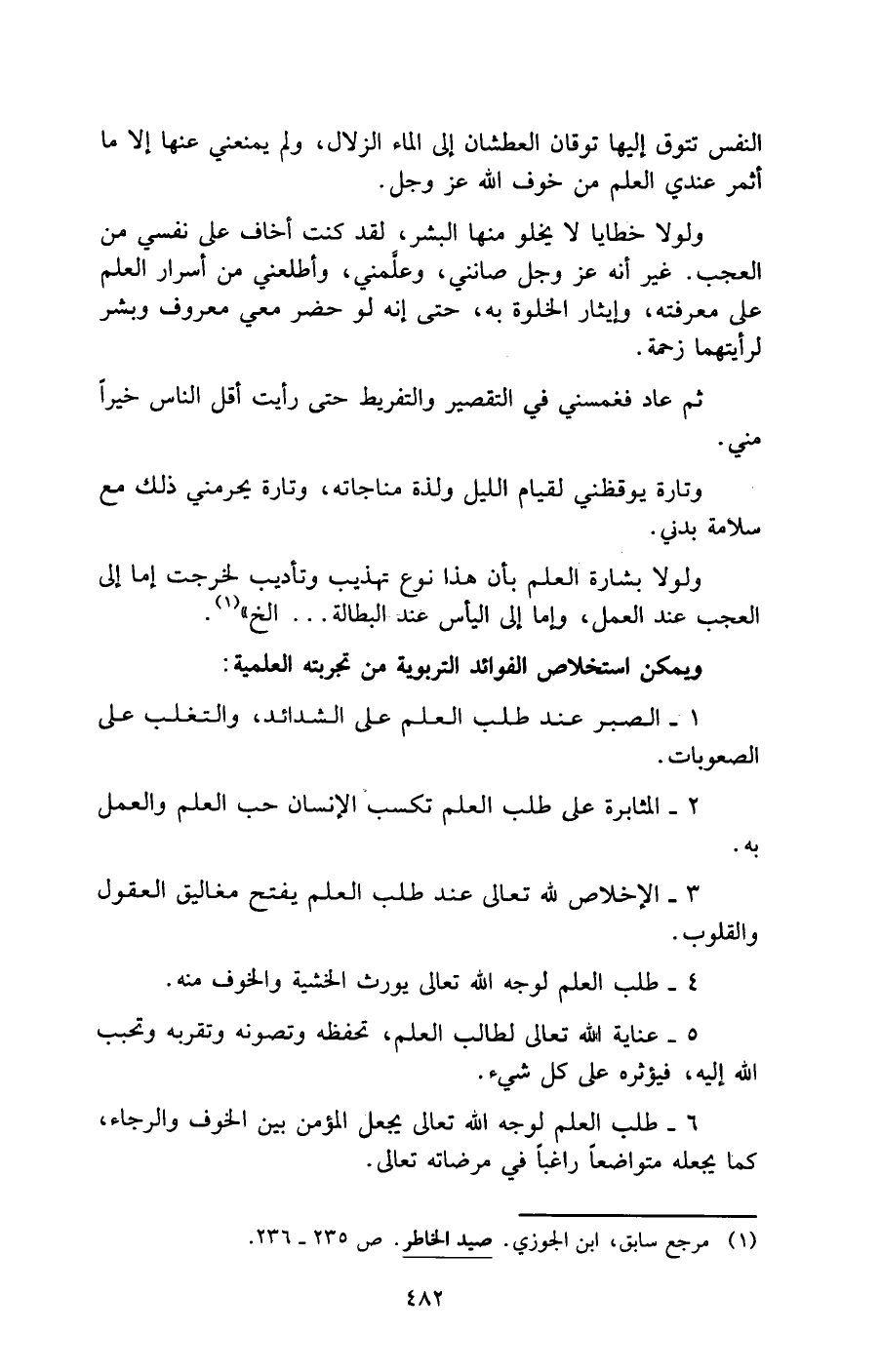 (¬1) مرجع سابق، ابن الجوزي. صيد الخاطر. ص 235 - 236.