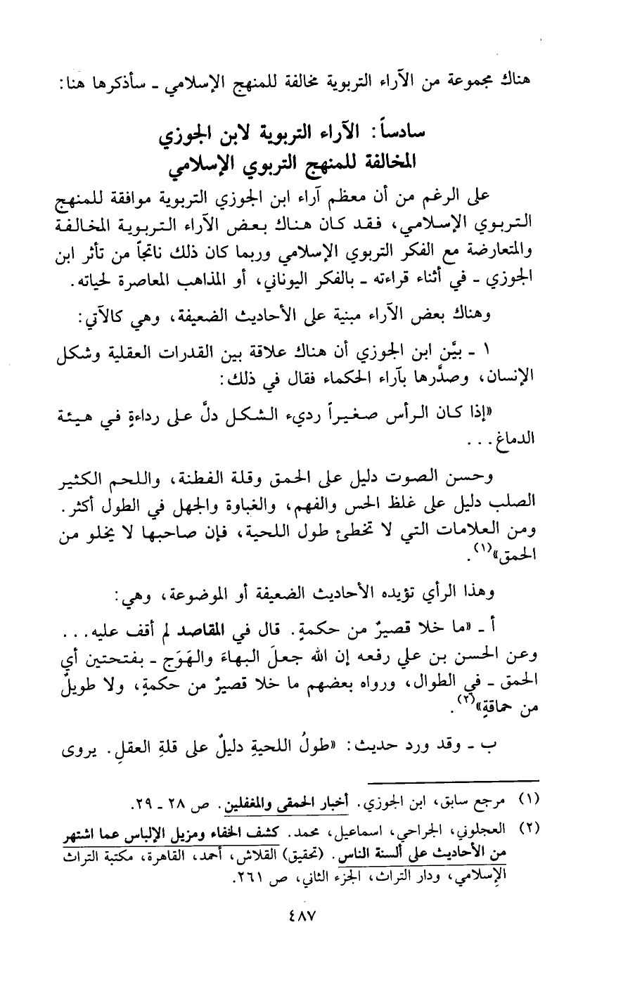 سادسًا: الآراء التربوية لابن الجوزى المخالفة للمنهج التربوي الإسلامي