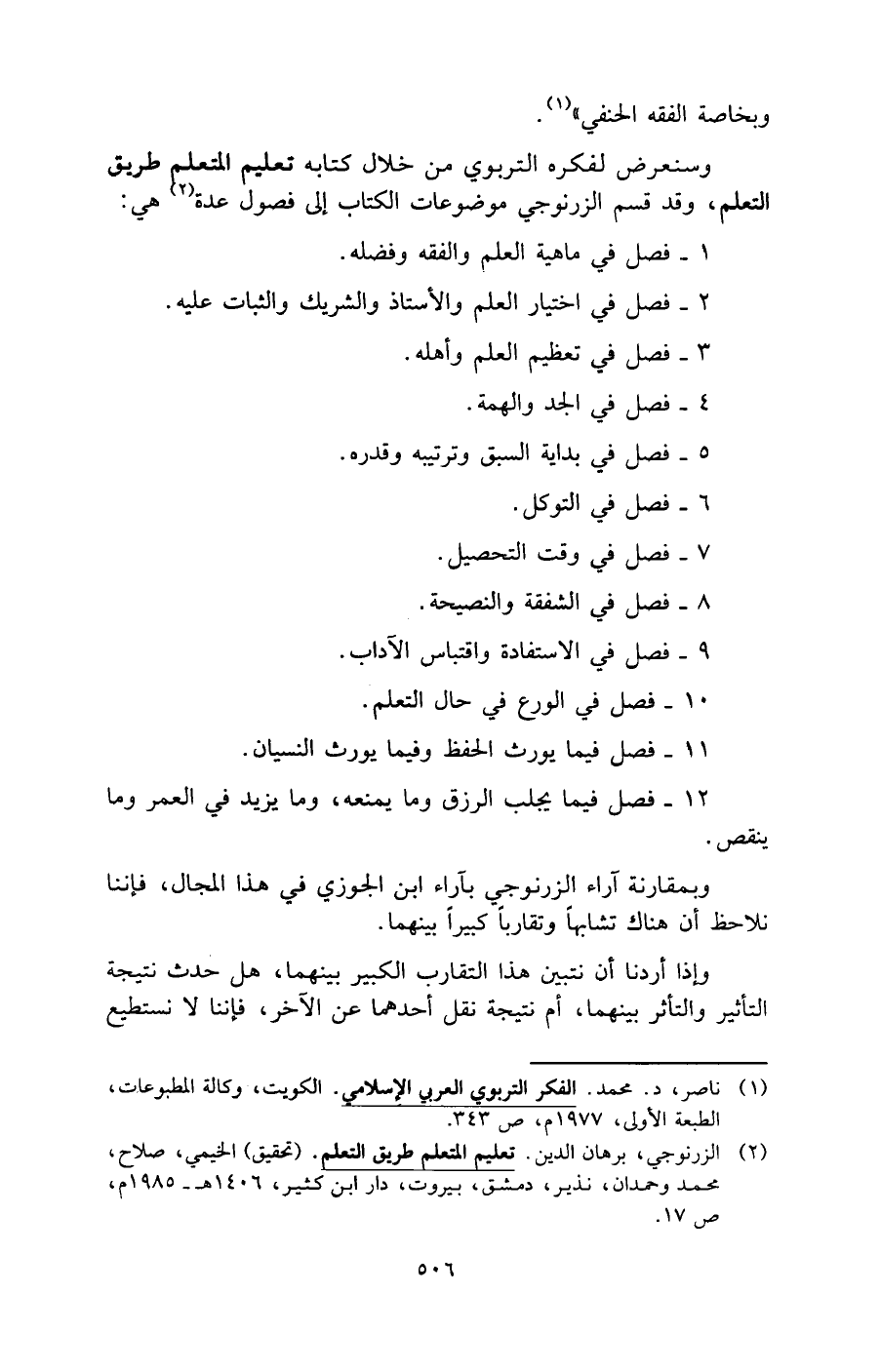 (¬1) ناصر، د. محمد. الفكر التربوي العربي الإسلامي. الكويت، وكالة المطبوعات، الطبعة الأولى، 1977 م، ص 343.