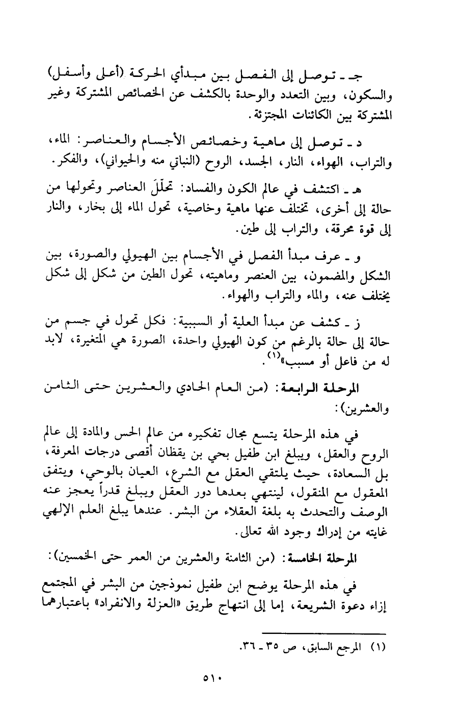و- عرف مبدأ الفصل في الأجسام بين الهيولي والصورة، بين الشكل والمضمون، بين العنصر وماهيته، تحول الطين من شكل إلى شكل يختلف عنه، والماء والتراب والهواء.