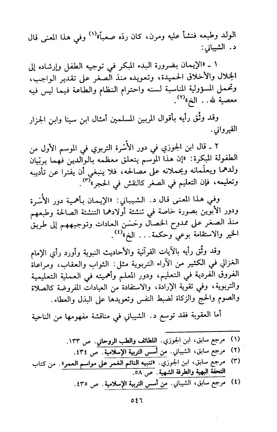 (¬4) مرجع سابق، الشيباني. من أسس التربية الإِسلامية. ص 435.