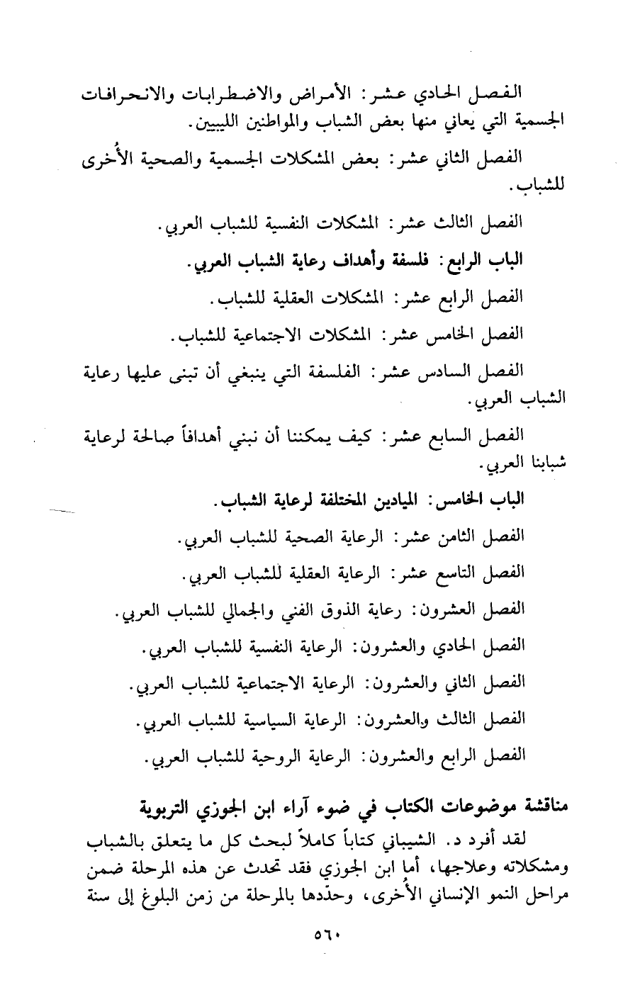 • الفصل السادس عشر: الفلسفة التي ينبغي أن تبنى عليها رعاية الشباب العربي.