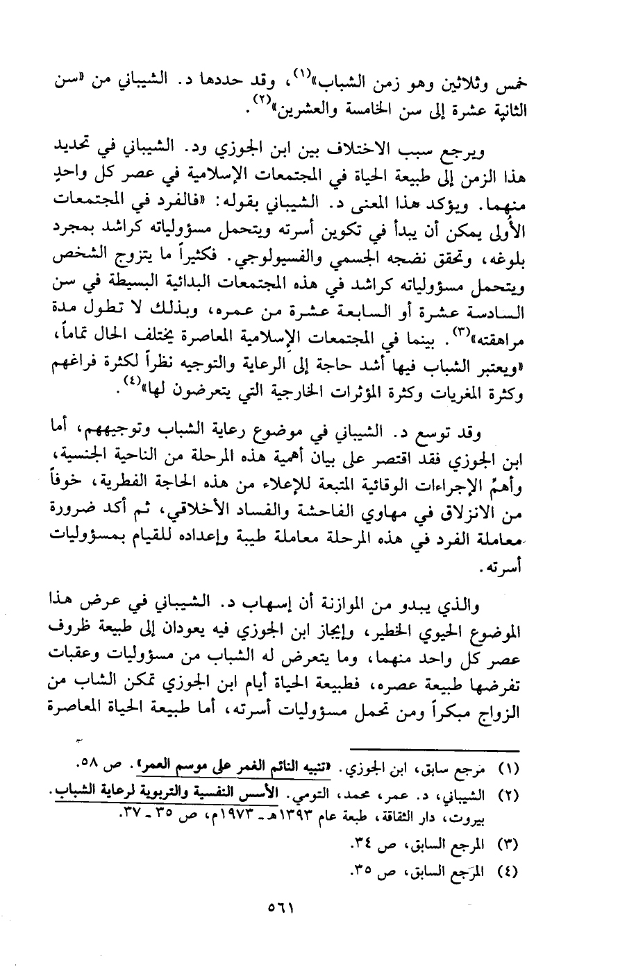 (¬2) الشيباني، د. عمر، محمد، التومي. الأسس النفسية والتربوية لرعاية الشباب. بيروت، دار الثقاقة، طبعة عام 1393 هـ - 1973 م، ص 35 - 37.