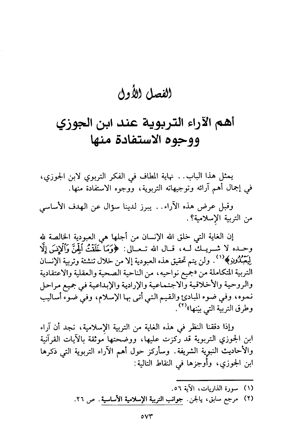 (¬2) مرجع سابق، يالجن. جوانب التربية الإسلامية الأساسية. ص 26.