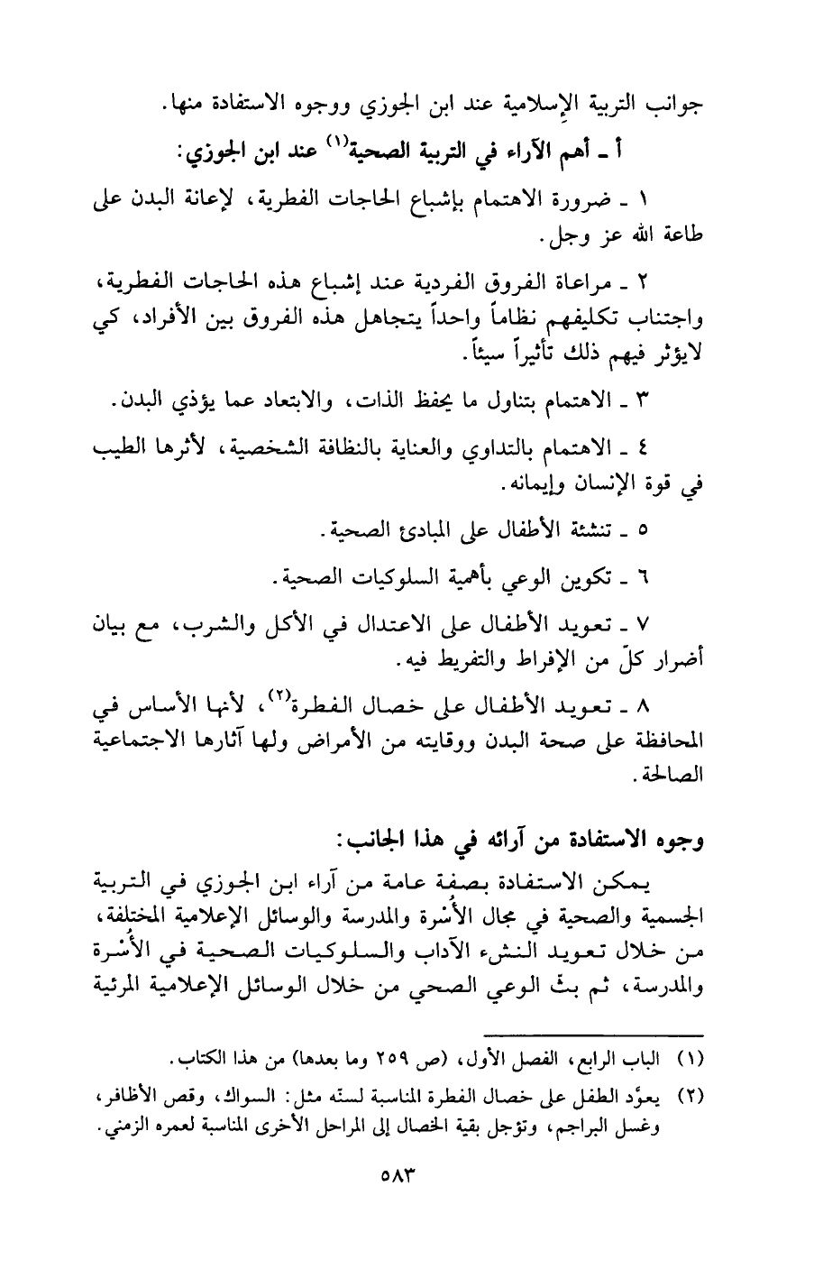 جوانب التربية الإِسلامية عند ابن الجوزي ووجوه الاستفادة منها.
