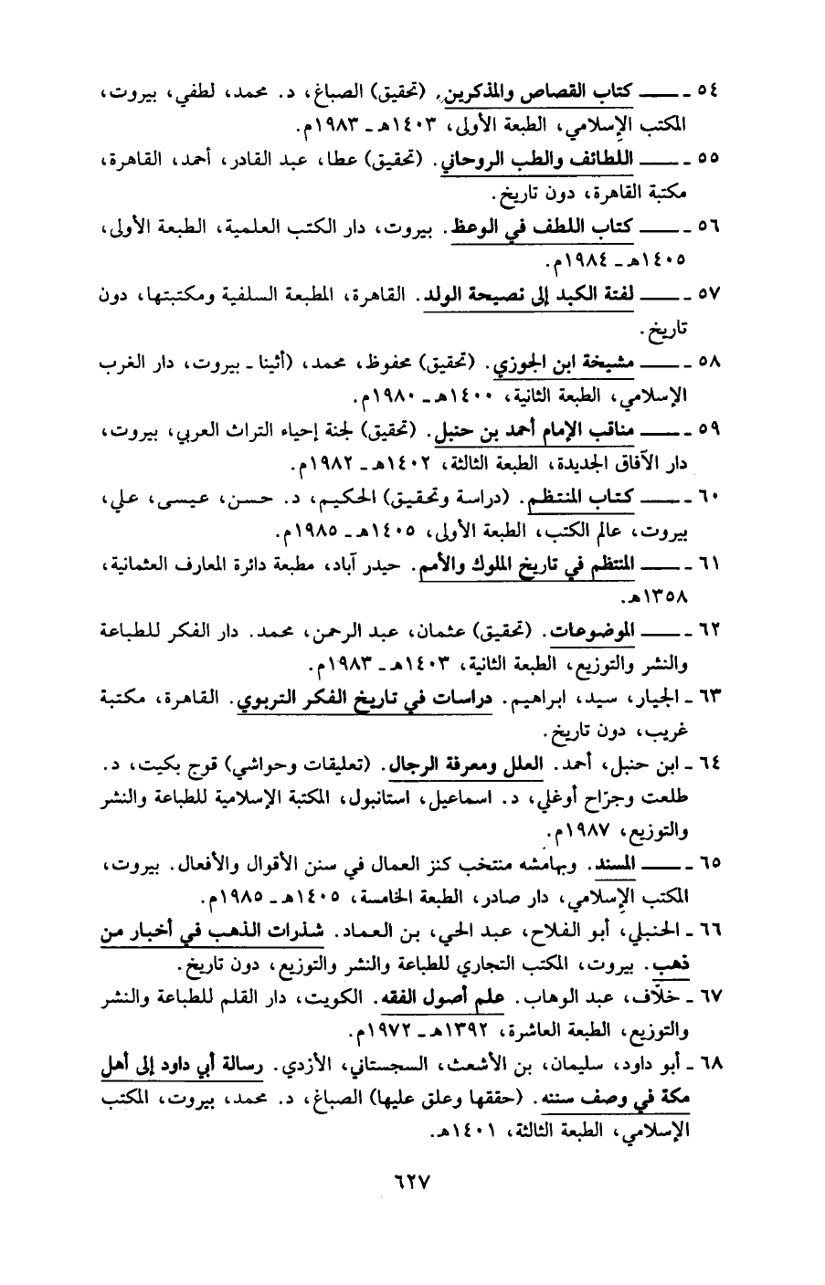 57 - لفتة الكبد إلى نصيحة الولد. القاهرة، المطبعة السلفية ومكتبتها، دون تاريخ.