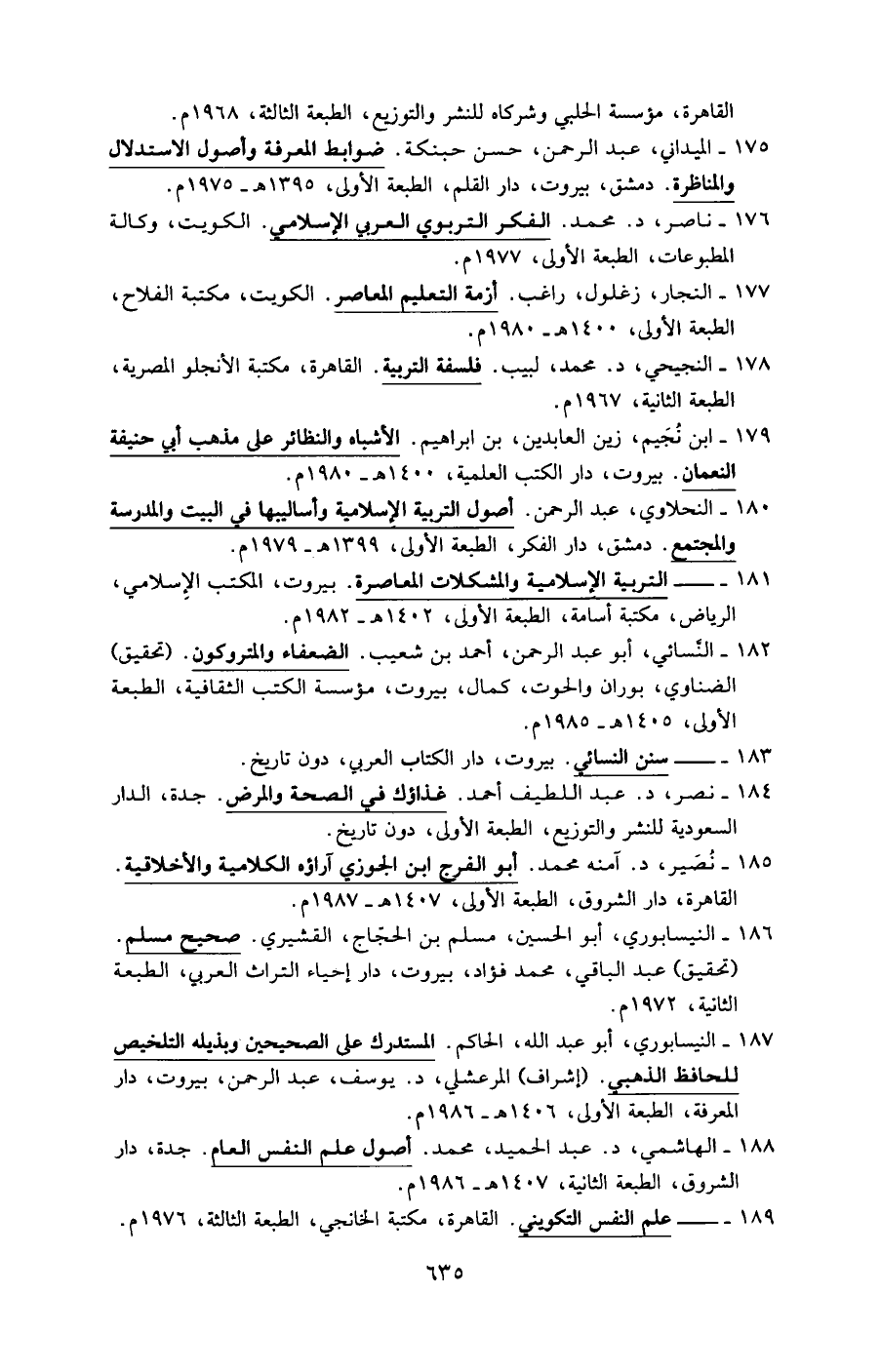 180 - النحلاوي، عبد الرحمن. أصول التربية الإسلامية وأساليبها فى البيت والمدرسة والمجتمع. دمشق، دار الفكر، الطبعة الأولى، 1399 هـ - 1979 م.