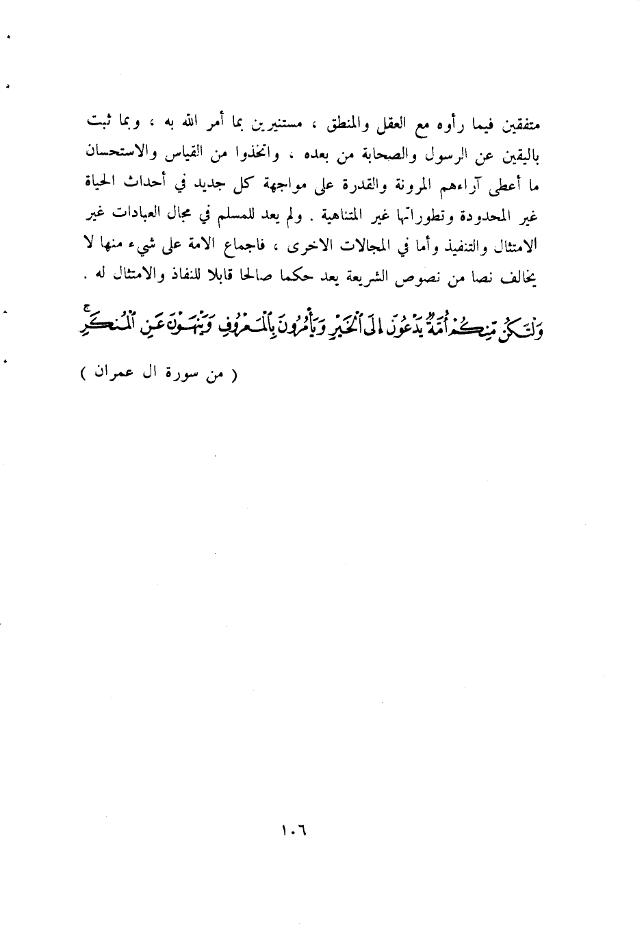{وَلْتَكُنْ مِنْكُمْ أُمَّةٌ يَدْعُونَ إِلَى الْخَيْرِ وَيَأْمُرُونَ بِالْمَعْرُوفِ وَيَنْهَوْنَ عَنِ الْمُنْكَرِ} من سورة آل عمران.