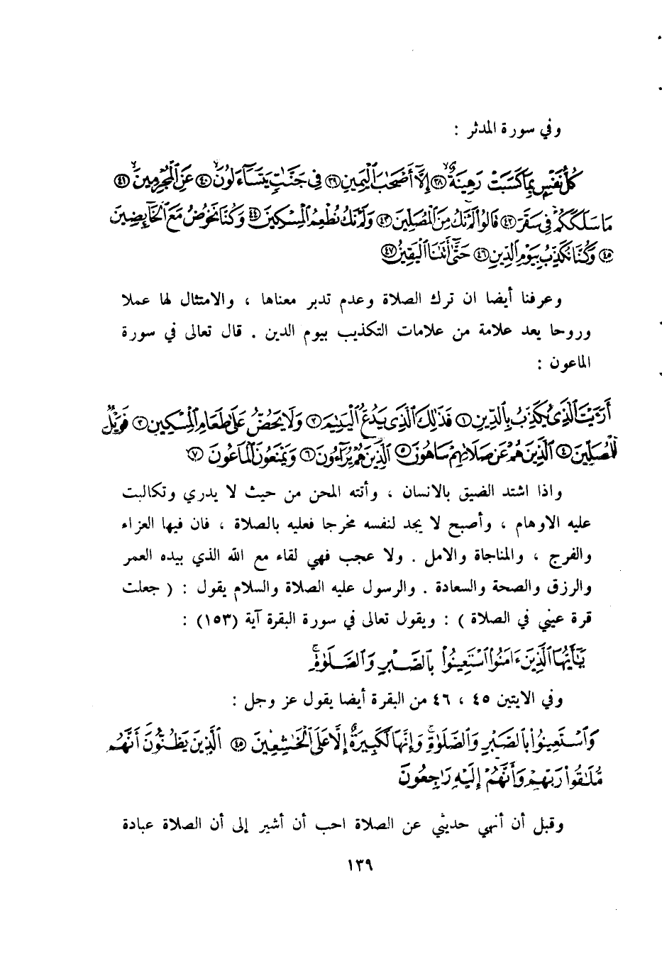{كُلُّ نَفْسٍ بِمَا كَسَبَتْ رَهِينَةٌ، إِلَّا أَصْحَابَ الْيَمِينِ، فِي جَنَّاتٍ يَتَسَاءَلُونَ، عَنِ الْمُجْرِمِينَ، مَا سَلَكَكُمْ فِي سَقَرَ، قَالُوا لَمْ نَكُ مِنَ الْمُصَلِّينَ، وَلَمْ نَكُ نُطْعِمُ الْمِسْكِينَ، وَكُنَّا نَخُوضُ مَعَ الْخَائِضِينَ، وَكُنَّا نُكَذِّبُ بِيَوْمِ الدِّينِ، حَتَّى أَتَانَا الْيَقِينُ}