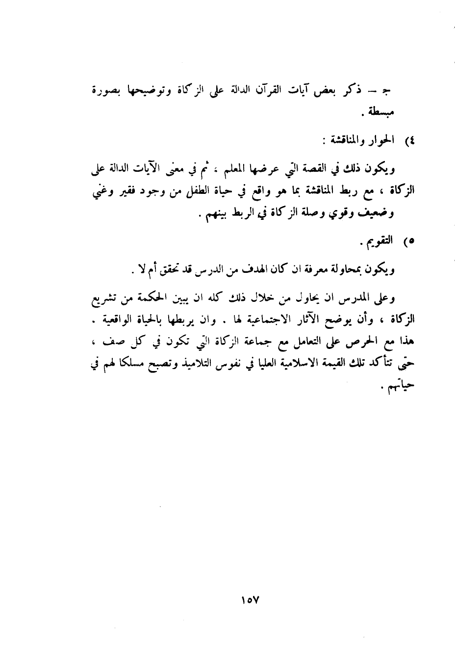 وعلى المدرس أن يحاول من خلال ذلك كله أن يبين الحكمة من تشريع الزكاة، وأن يوضح الآثار الاجتماعية لها، وأن يربطها بالحياة الواقعية، هذا مع الحرص على التعامل مع جماعة الزكاة التي تكون في كل صف، حتى تتأكد تلك القيمة الإسلامية العليا في نفوس التلاميذ وتصبح مسلكا لهم في حياتهم.