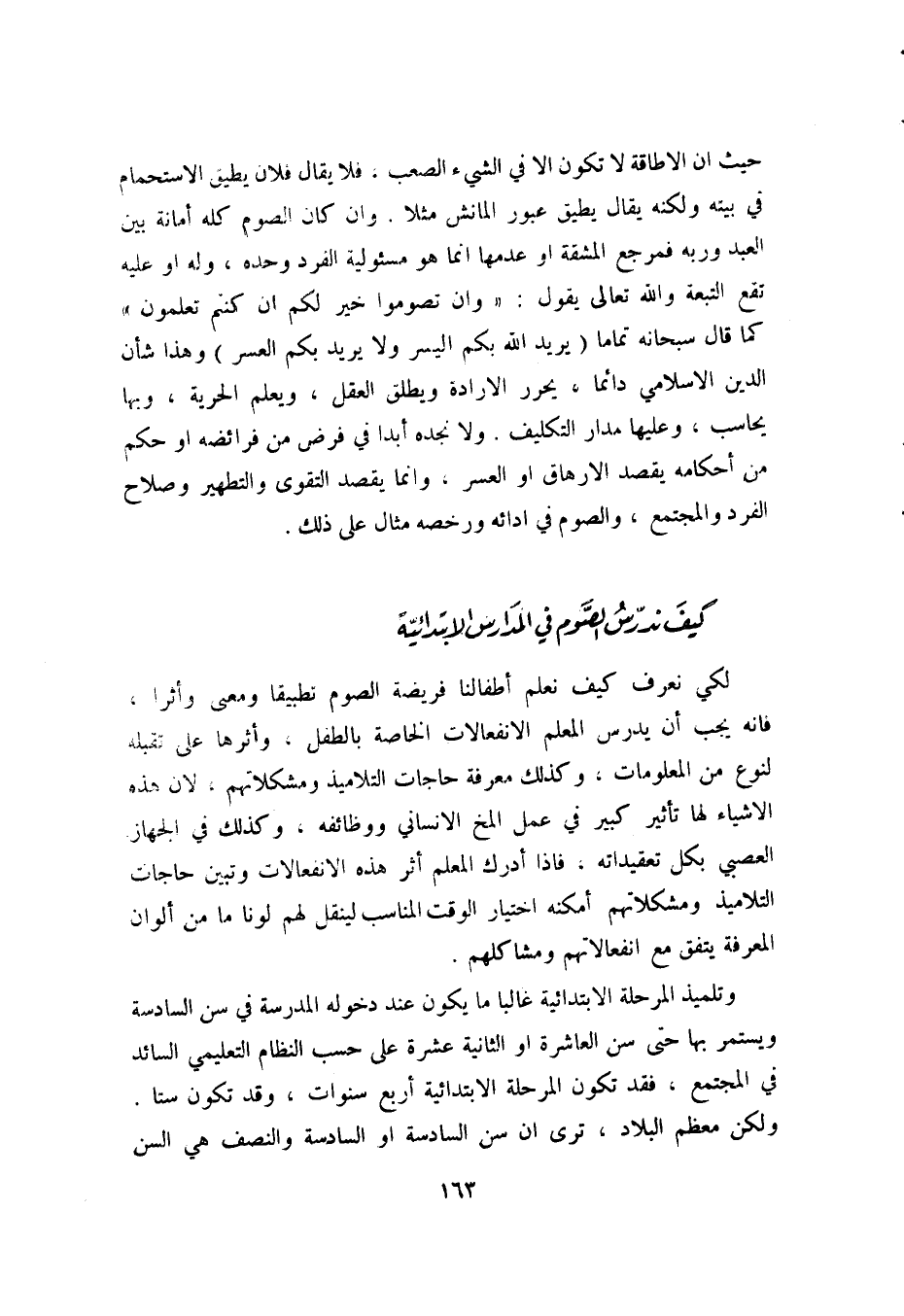 لكي نعرف كيف نعلم أطفالنا فريضة الصوم تطبيقا ومعنى وأثرا، فإنه يجب أن يدرس المعلم الانفعالات الخاصة بالطفل، وأثرها على تقبله لنوع من المعلومات، وكذلك معرفة حاجات التلاميذ ومشكلاتهم؛ لأن هذه الأشياء لها تأثير كبير في عمل المخ الإنساني ووظائفه، وكذلك في الجهاز العصبي بكل تعقيداته، فإذا أدرك المعلم أثر هذه الانفعالات وتبين حاجات التلاميذ ومشكلاتهم أمكنه اختيار الوقت المناسب لينقل لهم لونا ما من ألوان المعرفة يتفق مع انفعالاتهم ومشاكلهم.