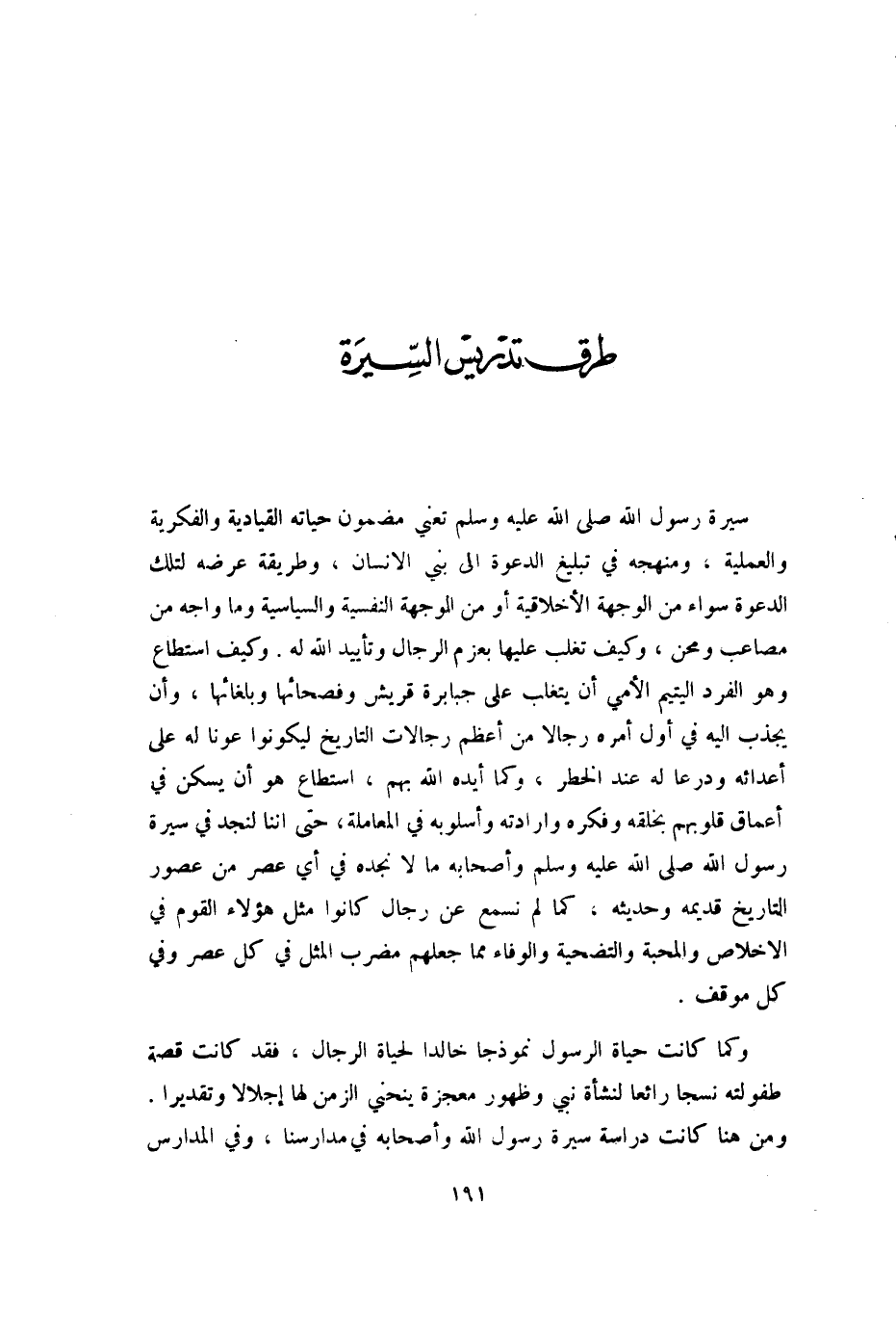 وكما كانت حياة الرسول نموذجا خالدا لحياة الرجال، فقد كانت قصة طفولته نسجا رائعا لنشأة نبي وظهور معجزة ينحني الزمن لها إجلالا وتقديرا. ومن هنا كانت دراسة سيرة رسول الله وأصحابه في مدارسنا، وفي المدارس